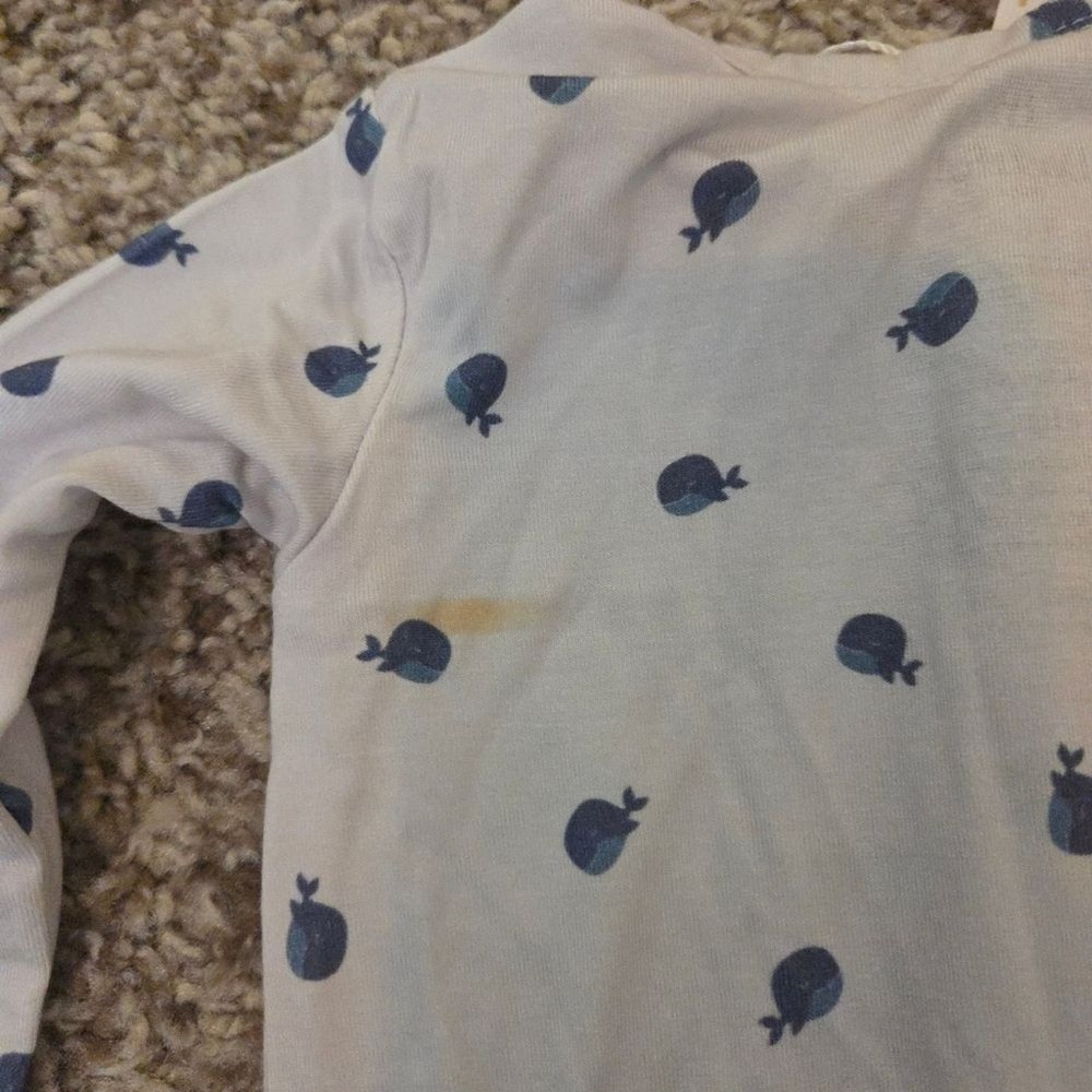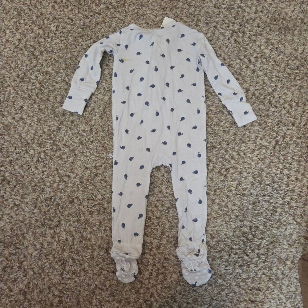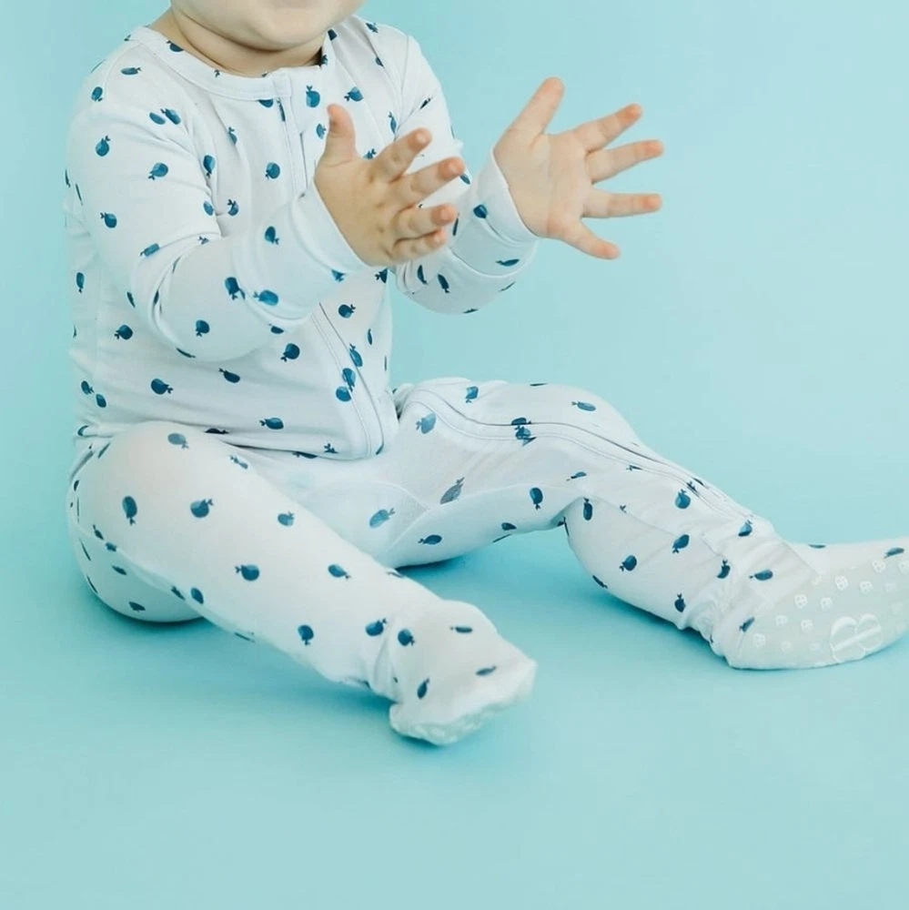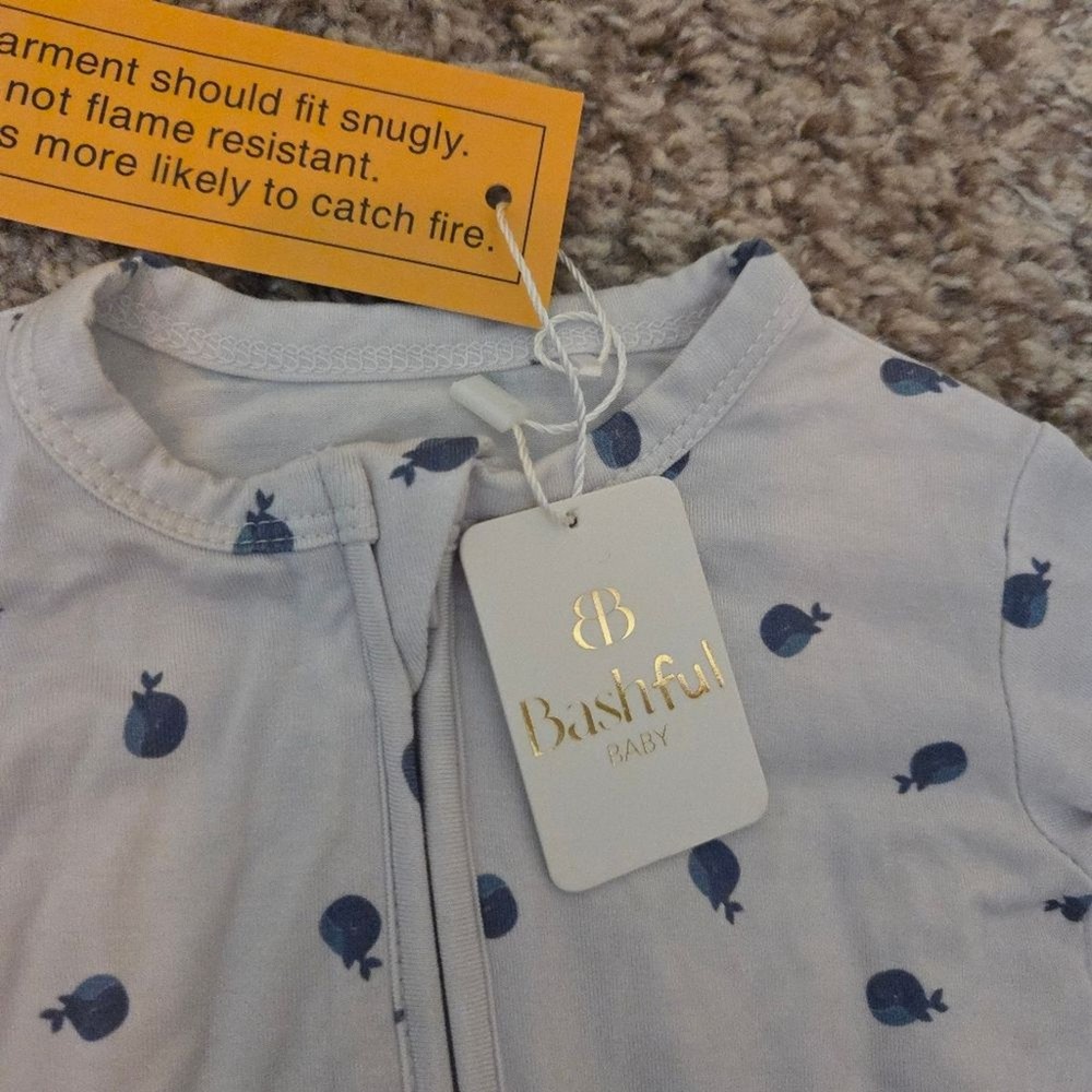 Lil' Whales Footie was designed for cozy mornings, nighttime snuggles, and everything in between. Made from buttery-soft 95% bamboo viscose and 5% spandex, this pajama is breathable, stretchy, and gentle on sensitive skin — including eczema and atopic dermatitis. ✨ DETAILS Ultra-soft 95% bamboo viscose + 5% spandex Hypoallergenic + gentle for eczema and atopic dermatitis Temperature-regulating for all-night comfort Extra-stretchy for longer wear through growth spurts No itchy tags + non-toxic dyes CPSIA-compliant safety ✨ SIZING True to size with extra stretch Snug-fit for safer sleep standards If between sizes, size up had one small strain on the back shoulder. I'm sure it can be removed but I haven't tried to because tags are still attached
