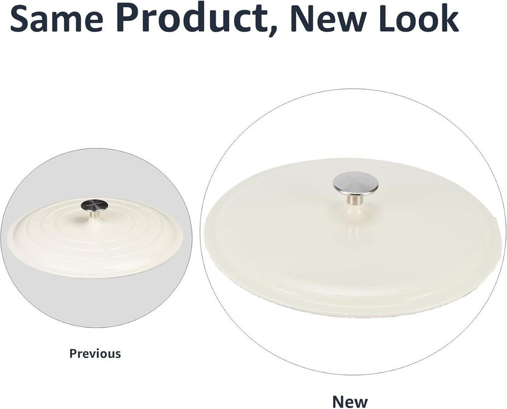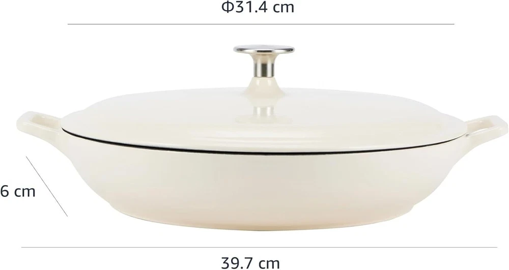 Casserole cast iron skillet in white with loop side handles for easy transport Oven safe up to 500 degrees F Cast iron for even heat distribution and retention Enamel doesn't have non-stick function Holds 3.3 Quarts Always use hot-pads, oven mitts, or potholders while moving or removing cast iron cookware on or from the stove or oven. Brand Amazon Basics Material Cast Iron Capacity 3.3 Quarts Color White Finish Type Enameled 5890274 On Feb 25, 2025 at 22:21:21 PST, seller added the following information: