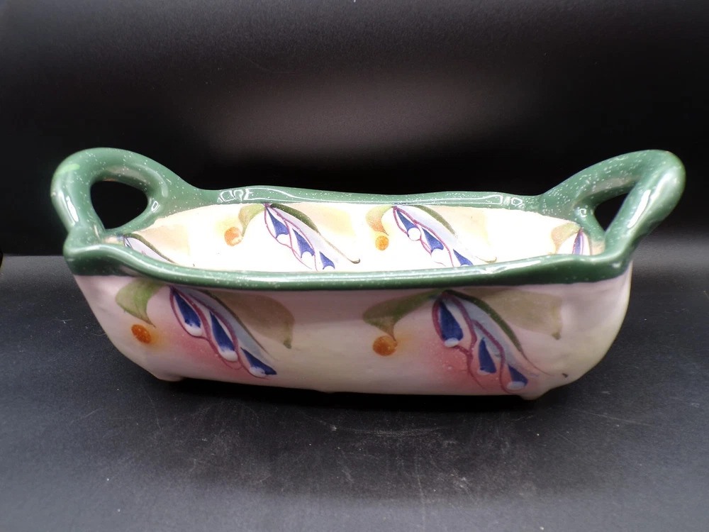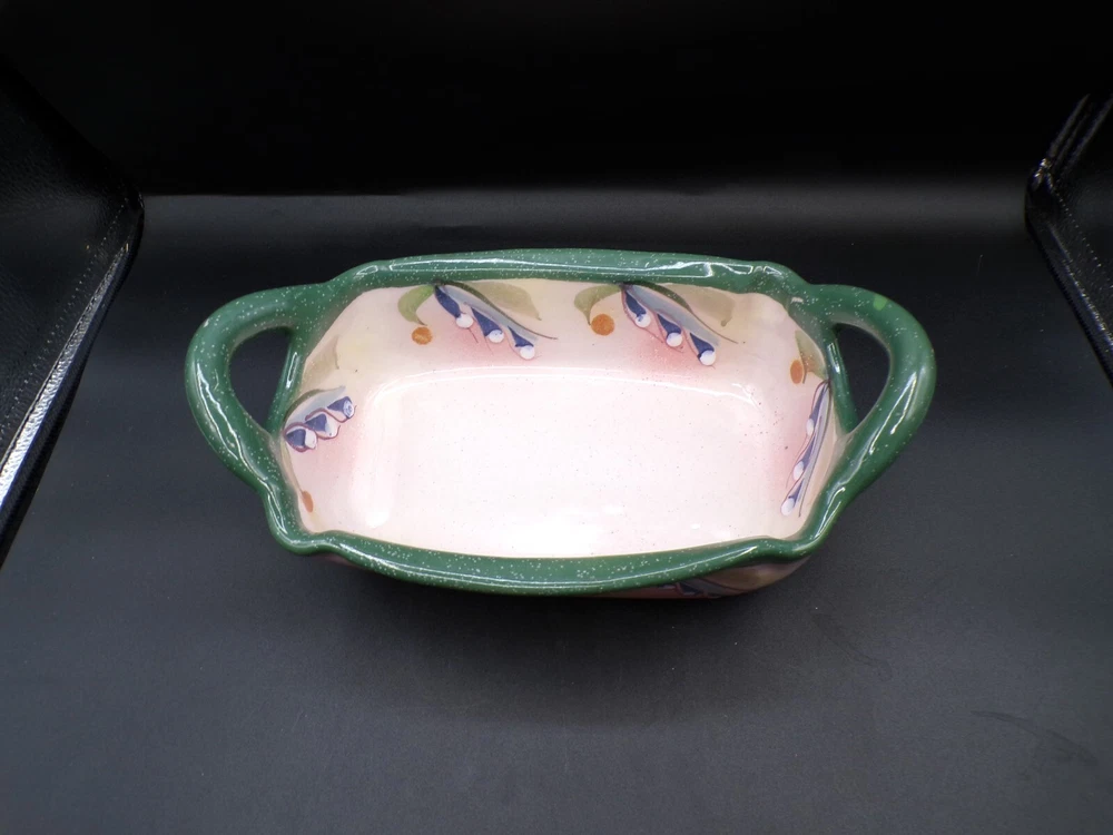 This beautiful baking dish serving dish from Basin Creek Pottery is a must-have for any collector of vintage pottery. The rectangular shape and hand-decorated red and blue flower theme make it a unique addition to any kitchen. Crafted from high-quality stoneware, this dish is perfect for baking and serving your favorite casseroles. With one compartment and a width of 7 inches, it is the perfect size for family meals. The impressed backstamp and handmade construction add to its charm. Don't miss out on the opportunity to own a piece of United States pottery history.