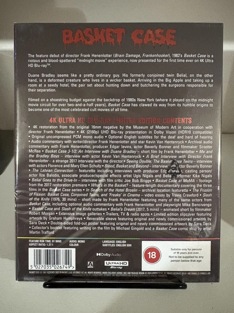 Basket Case (4K UHD) With Rare OOP Arrow Store Exclusive VHS Slipcover Shipped through Canada Post with tracking number