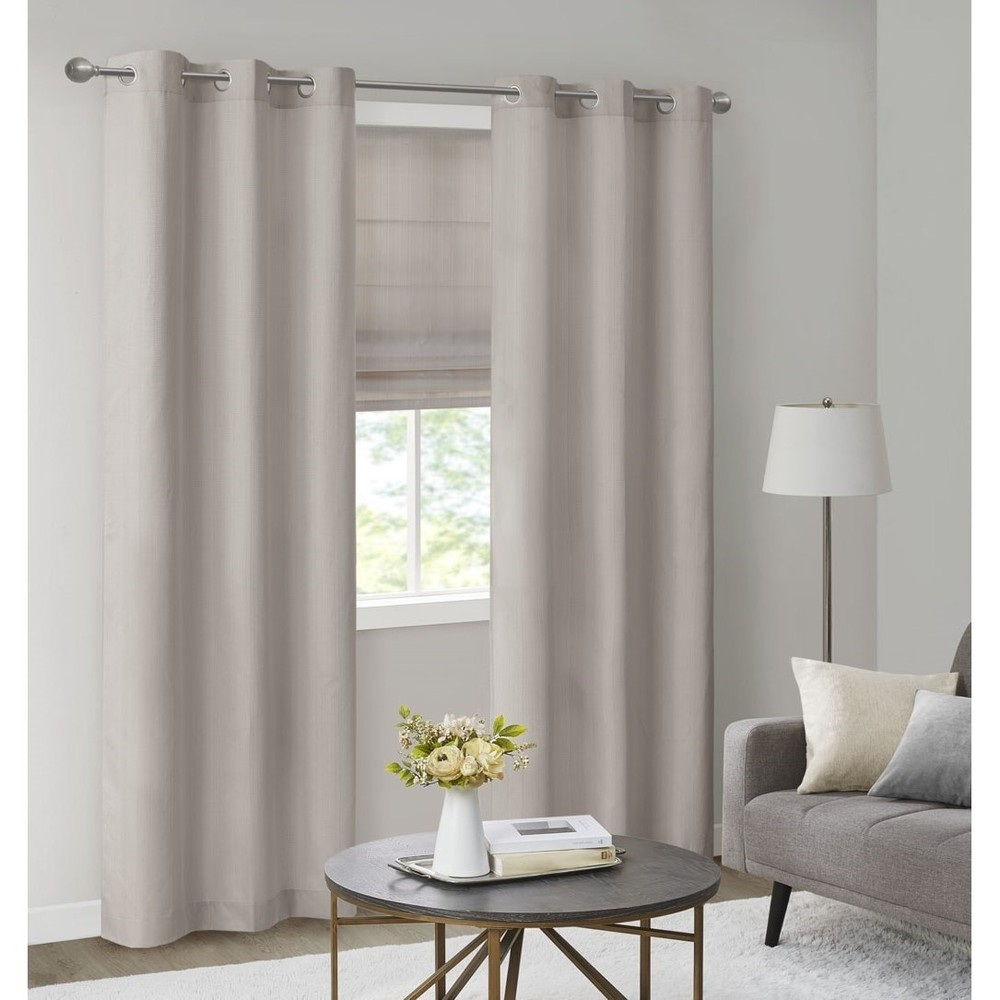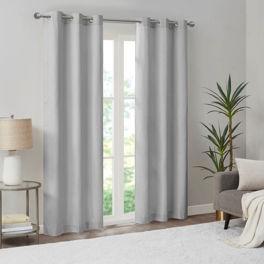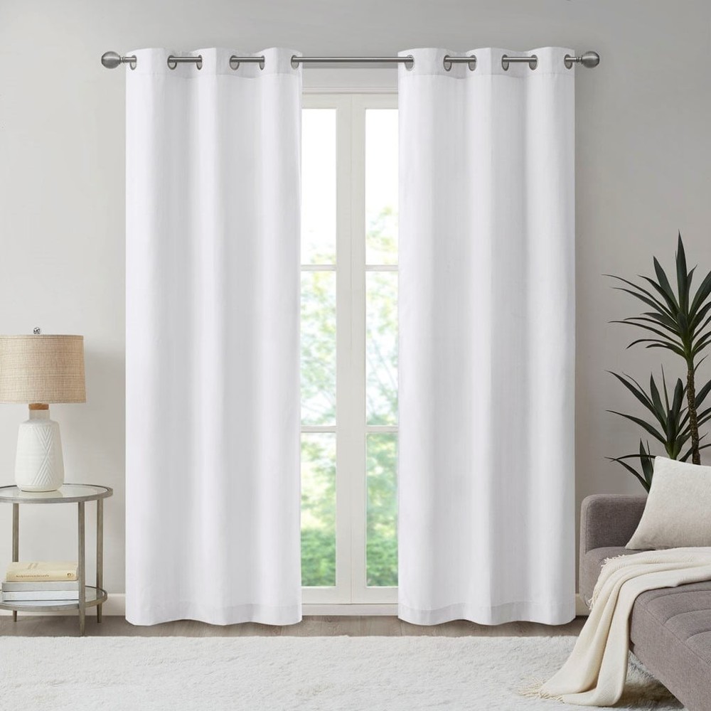 DescriptionCreate a stylish and comfortable space with the Madison Park Galen Basketweave Room Darkening Window Panel Pair. These room darkening window curtains are made from a basket weave texture base fabric that creates a natural look and feel. A thermal foambacking on the reverse provides energy efficiency and serves as an effective barrier to soften exterior light and noise. When closed, these solid window curtains offer a moderate level of privacy with a low ambiance level of lighting. This room darkening window panel pair is also OEKO-TEX certified, meaning they do not contain any harmful substances or chemicals to ensure quality comfort and wellness. Finished with silver grommet tops that fit up to a 1.25 inch diameter rod; Each panel measures 84" long and is machine washable for Free Shipping Over $49.99* Details Basketweave Room Darkening Curtain Panel Pair(2 Pcs Window Panels) Product Description: Description Create a stylish and comfortable space with the Madison Park Galen Basketweave Room Darkening Window Panel Pair. These room darkening window curtains are made from a basket weave texture base fabric that creates a natural look and feel. A thermal foambacking on the reverse provides energy efficiency and serves as an effective barrier to soften exterior light and noise. When closed, these solid window curtains offer a moderate level of privacy with a low ambiance level of lighting. This room darkening window panel pair is also OEKO-TEX certified, meaning they do not contain any harmful substances or chemicals to ensure quality comfort and wellness. Finished with silver grommet tops that fit up to a 1.25 inch diameter rod; Each panel measures 84" long and is machine washable for easy care. Complete the look by layering in our coordinating Madison Park Galen Roman Shade collection for a fresh update, available and sold separately. Perfect for dining rooms, living room, or any open spaces. Product Features Basketweave room darkening window panel pair Set of 2 ready to decorate; each panel measures 40" wide and 84" length Oeko-Tex Certified, includes no harmful substances or chemicals 2 pass foamback finish for room darkening Energy Efficient and Effective barrier to soften harsh exterior light and noise intrusion Moderate level of added privacy, with low ambiance lighting level when curtains are closed Panel pair value set ready to hang with silver grommet top finish; Fits up 1.25" diameter rod Machine washable for easy care Stylishly layer with coordinating Madison Park Galen Roman Shade for the complete look Perfect for dining rooms, living rooms, hallways, and open spaces Product Details 2-PK 40x84" 2 Window Panels:40"W x 84"L (2) Material Face100% Polyester Flocking100% Rayon