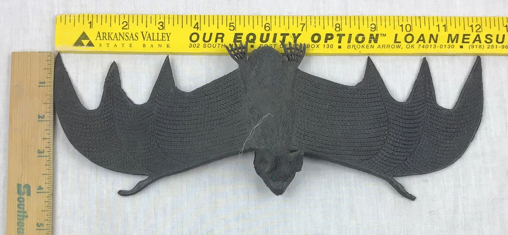 Color: Black Seller Notes: “New, with wear/writing on packaging.” Material: Rubber Country/Region of Manufacture: China Occasion: Halloween Time Period Manufactured: Current (1991-Now) Handmade: No Items Included: Bat Brand: unbranded