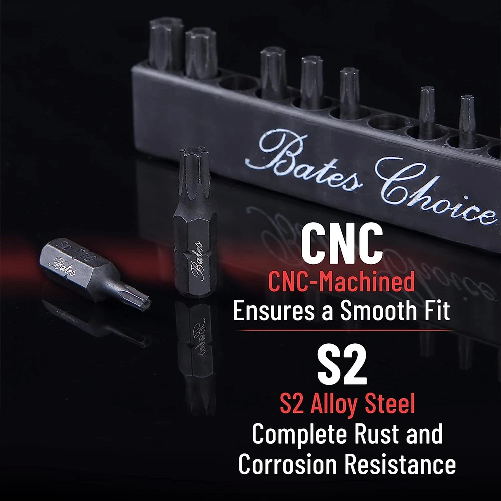 Store New Arrivals Add to Favorite View Feedback Contact Bates- Tamper Proof Torx Bit Set, 13 Pieces Set, T4-T40, Torx Set, Torx Security Bit Set, Security Torx Bit Set, Star Bits Set, Screwdriver Bit Sets, 1/4 Hex Bit Set, Torx Bits Set Description Manufacturer Bates Choice Style Torx Bit Set, 13 pcs, T4-T40 Finish Corrosion Resistance,Manganese Brand Bates Choice Material S2 Steel Country of Origin China Batteries Required? No Compatible Fastener Range 0.25 inches Drive System Torx Item Weight 2.89 ounces Batteries Included? No Number of Pieces 13 Finish Type Corrosion Resistance,Manganese Package Dimensions 4.53 x 1.85 x 0.55 inches Size One Size The set contains 13-piece 1/4-inch tamper proof torx bits, neatly stored in a convenient organizer sleeve. The sizes are printed in white on the organizer, enabling quick and easy recognition. Bates tamper proof torx bit set is made from industrial-grade S2 alloy steel, which undergoes hardening to minimize wear-outs. This ensures their longevity and durability even under heavy use. Each tamper proof torx bit is precision CNC-machined to provide a seamless fit and protect both the bit ends and the fasteners being worked on. To guarantee long-lasting performance, the star bits undergo an active manganese phosphate treatment, providing complete rust and corrosion resistance. This treatment enhances their durability and makes them suitable for use. The precision chamfer bit ends of the bits facilitate smooth insertion and engagement with fasteners. Additionally, the sizes are stamped directly on the bits for easy identification, and white printing on the storage organizer further aids in recognizing the correct size. The set contains 13-piece 1/4-inch tamper proof torx bits, neatly stored in a convenient organizer sleeve. The sizes are printed in white on the organizer, enabling quick and easy recognition. Bates tamper proof torx bit set is made from industrial-grade S2 alloy steel, which undergoes hardening to minimize wear-outs. This ensures their longevity and durability even under heavy use. Each tamper proof torx bit is precision CNC-machined to provide a seamless fit and protect both the bit ends and the fasteners being worked on. To guarantee long-lasting performance, the star bits undergo an active manganese phosphate treatment, providing complete rust and corrosion resistance. This treatment enhances their durability and makes them suitable for use. The precision chamfer bit ends of the bits facilitate smooth insertion and engagement with fasteners. Additionally, the sizes are stamped directly on the bits for easy identification, and white printing on the storage organizer further aids in recognizing the correct size. ABOUT US We offer the best prices around on high quality products. Our E-store includes media such as books, movies, music and games while offering electronics, toys, sporting apparel, clothing, tools, general home, garden items and more. SHIPPING We are always working hard to ensure your package arrives as soon as possible. Please understand that some factors like weather, high postal traffic, and the performance of shipping companies are outside of our control. We offer free shipping to the lower 48 states and ship within 2 business days of payment, usually sooner. We do not accept P.O. Boxes. Please provide a physical address. RETURNS We offer a 30-Day Return Policy on items which you are not completely satisfied with. You have the option for a full-refund or an exchange of the item. No returns are available on items shipped outside of the USA. PAYMENT We accept PayPal. CONTACT US This page content is yet to come Please ad us to your favorite seller and visit again later Thank You CUSTOMER SATISFACTION We try our very best to make sure every customer is completely satisfied. If there's a problem, message us! We're happy to help.