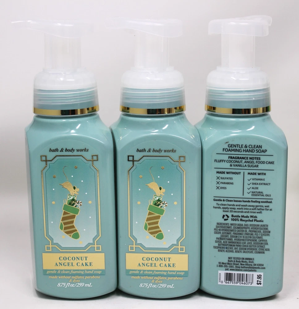 Bath & Body Works Coconut Angel Cake Gentle Foaming Hand Soap Lot of 3 8.75 oz We have been selling on eBay since 2002 and have always had a good standing with eBay due to our integrity. All our products are 100% authentic. To sell anything other than that is illegal and immoral. We do not ship internationally unless it's to a military address, in which case, we are honored to do so. All orders are double checked before shipping out to avoid any mistakes. We are honest and upfront about items and the condition of items. Once an item is purchased, the address cannot be changed nor can the order be canceled. Our handling time is 2 days, unless we’re out of town and then it will be changed to reflect any delay. Our customers make this business possible and I truly appreciate each & every one of you! Thank you!