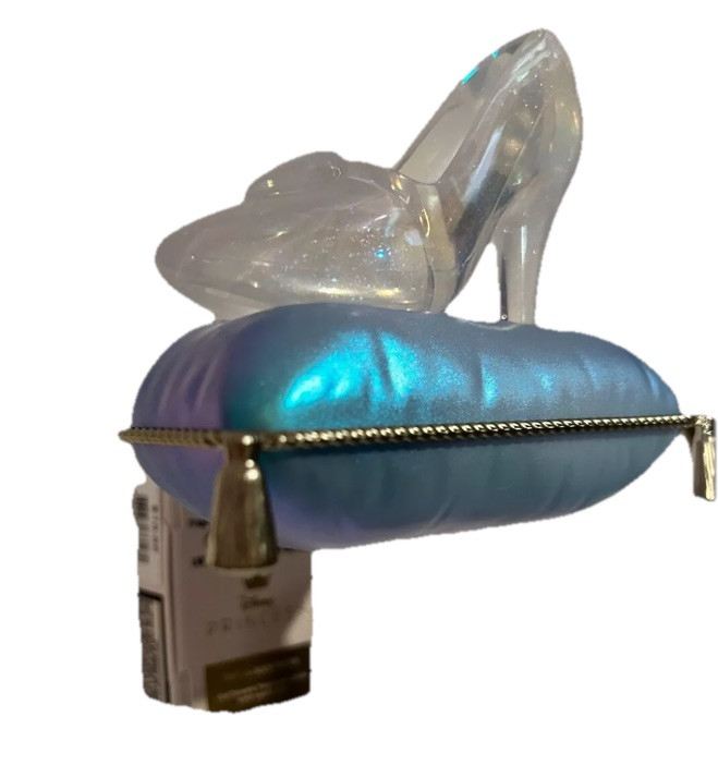 This Bath & Body Works Wallflower Plug is a Disney Princess Cinderella Slipper themed light-up nightlight. It is a medium-sized wall plug-in diffuser with a blue color and power source from a wall plug. It was manufactured in 2025 and features a light-up model.