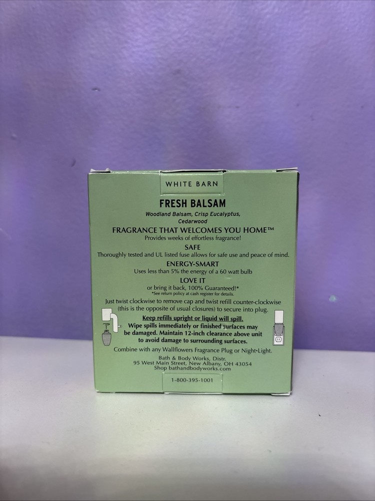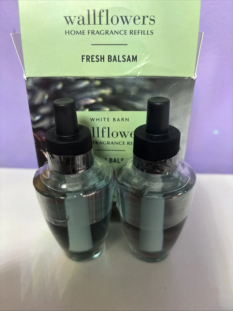 This Bath & Body Works Fresh Balsam 2-Pack Wallflower Refill includes two glass oil refills in a multi-color design. The refills are intended for use in an air freshener wallflower unit. They are not intended for non-domestic use and are made in the United States. The product is designed for adult use and is specifically for home fragrance purposes.