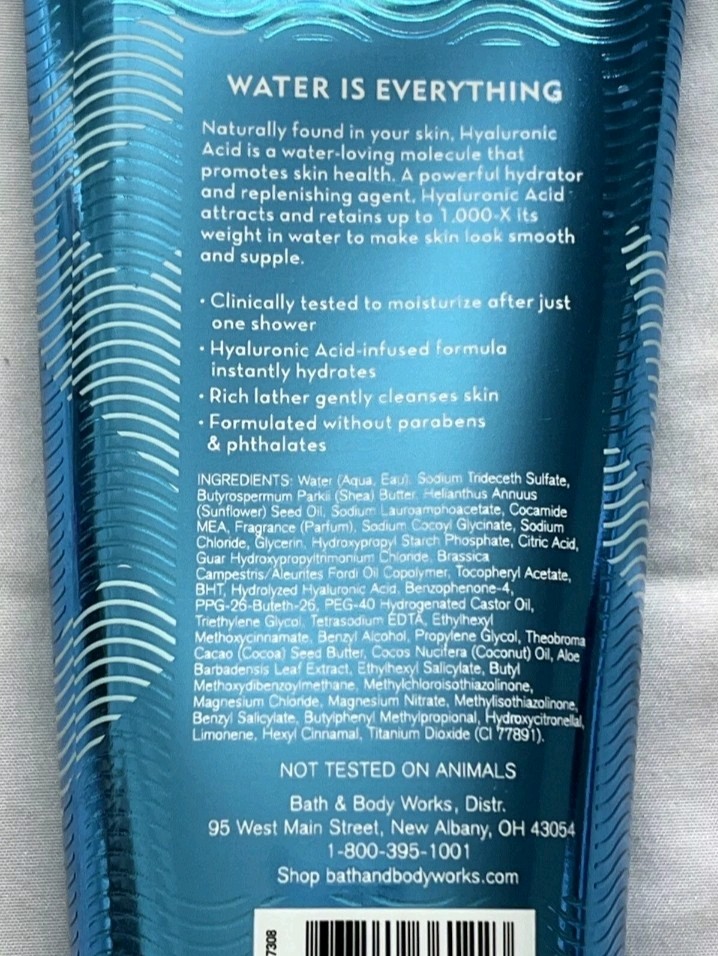 Size: Regular Brand: Bath & Body Works Body Area: Body Formulation: Cream Volume: 10 fl oz Ingredients: Hyaluronic Acid Features: Hydrating Type: Body Wash