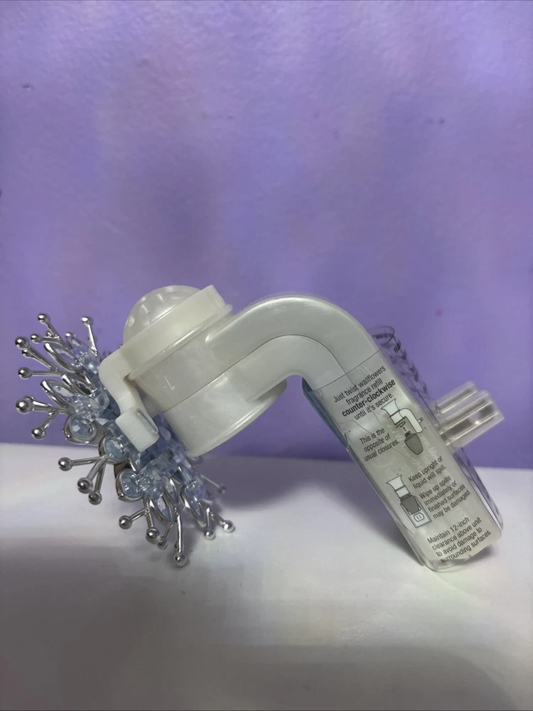This Bath & Body Works Blue Snowflake Wallflower Plug-In features a jeweled snowflake design suitable for Christmas. It is made of plastic, manufactured in 2024 in the United States. The wallflower bulb plug-in is intended for adults and includes a diffuser. The scent is not included, and the brand is Bath & Body Works. Perfect for adding a festive touch to your home fragrance collection.