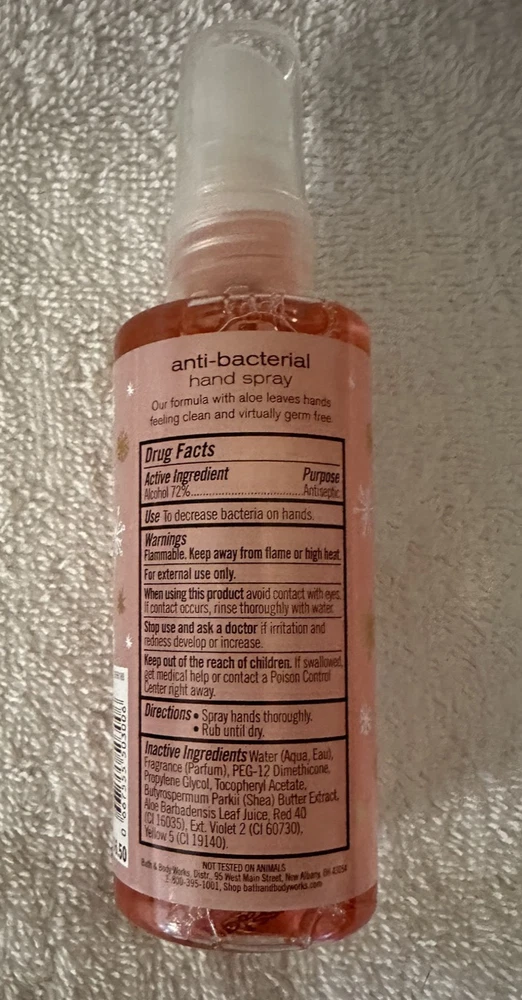 Bath & Body Works Anti-Bacterial Hand Spray with Natural Essential Oils-3 fl oz Twisted Peppermint Use to decrease bacteria on hands.