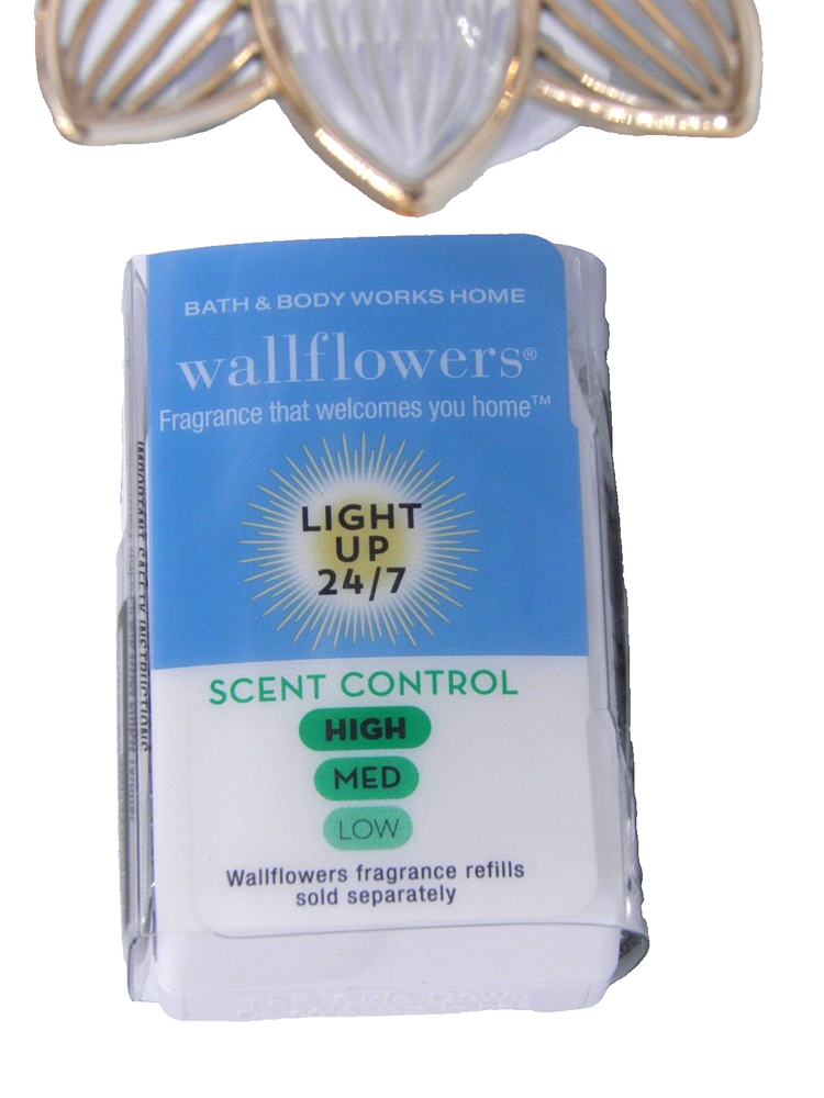 Bath & Body Works OPEN LOTUS NIGHTLIGHT SCENT CONTROL Wallflower Plug Diffuser Mailing Address - We will ONLY ship to the address on file with eBay. Before making a purchase, please ensure that your address is correct. We may otherwise cancel the sale. Handling Time - Our handling time is set to THREE BUSINESS DAYS. We ship packages Monday - Friday, except on holidays. This listing is NOT sponsored by, affiliated with, or representative of the mentioned brand(s), trade name(s), or trademark(s) and does not claim any ownership of such. All trademarks or brands mentioned in this listing are registered trademarks of their original owners who reserve all their rights and ownership. The use or mention of any trade name, product name, or trademark is necessary for identification and is for reference purposes only.
