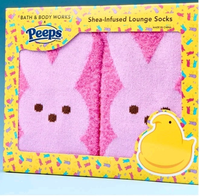 The Bath and Body Works Peeps Shea Infused Socks are a stylish and comfortable option for women looking to add some sweetness to their foot care routine. These anti-skid socks are infused with shea butter for extra moisture and tenderness, making them perfect for keeping your feet soft and hydrated while lounging or working out. With the brand's reputation for quality products, these socks are sure to be a delightful addition to any woman's wardrobe.