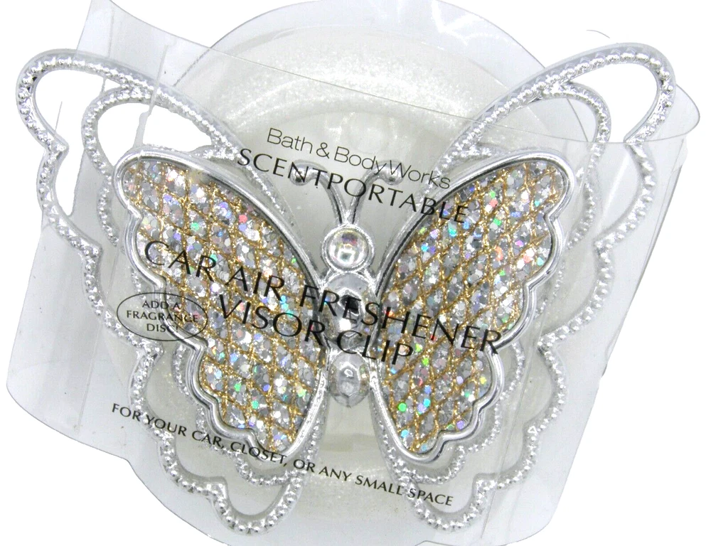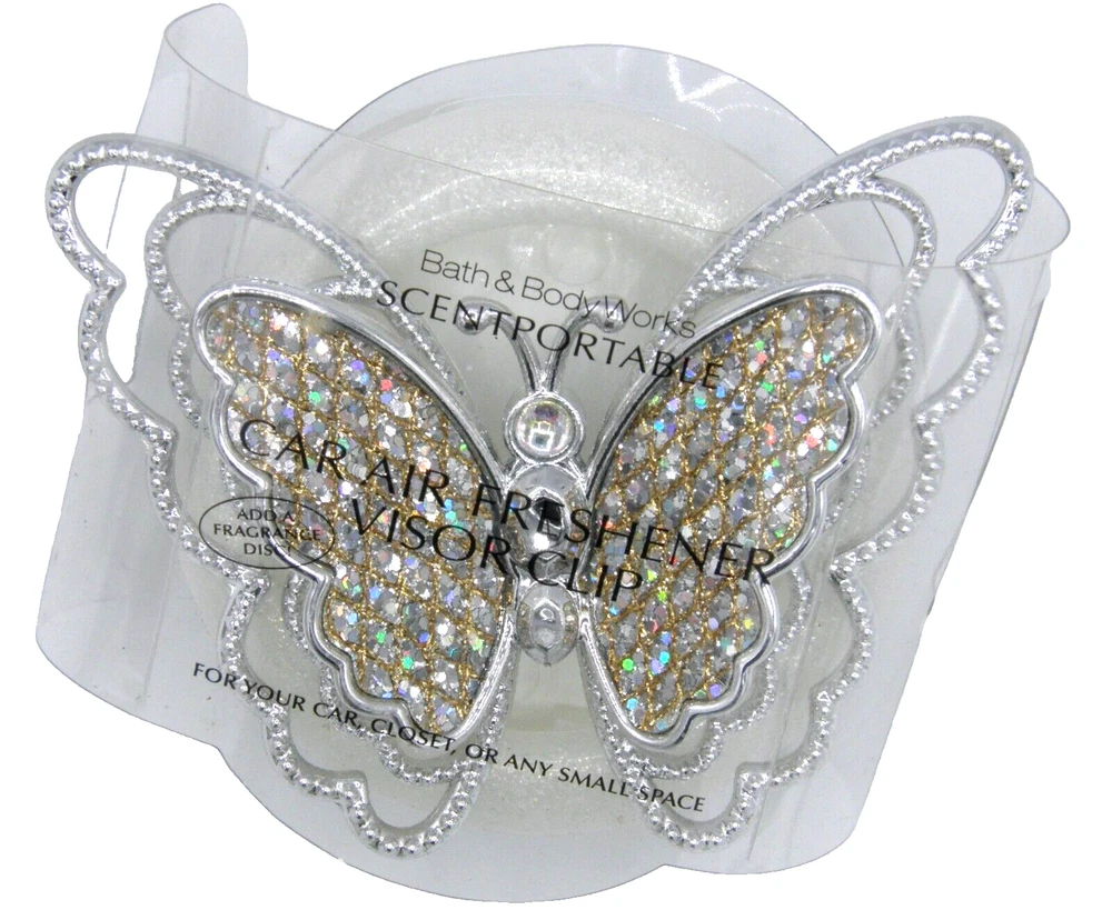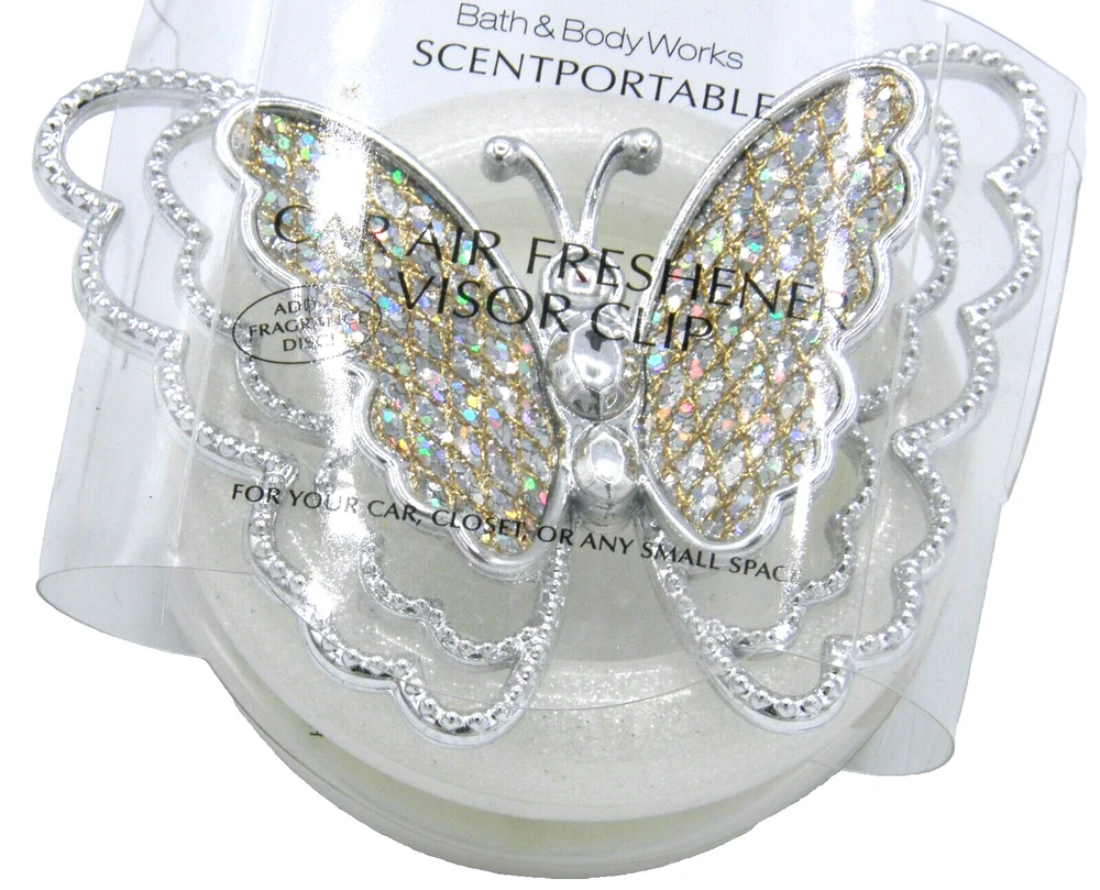 Bath & Body Works Silver Gemstone Butterfly Car SCENTPORTABLE VISOR CLIP Mailing Address - We cannot change the shipping address after purchase. This policy is in place for the protection of the buyer and seller. Before making a purchase, please ensure that your address is correct. We cannot change the address after purchase and will otherwise cancel the sale. Handling Time - Our handling time is set to THREE BUSINESS DAYS. We ship packages Monday - Friday, except on holidays . This listing is NOT sponsored by, affiliated with, or representative of the mentioned brand(s), trade name(s), or trademark(s) and does not claim any ownership of such. All trademarks or brands mentioned in this listing are registered trademarks of their original owners who reserve all their rights and ownership. The use or mention of any trade name, product name, or trademark is necessary for identification and is for reference purposes only