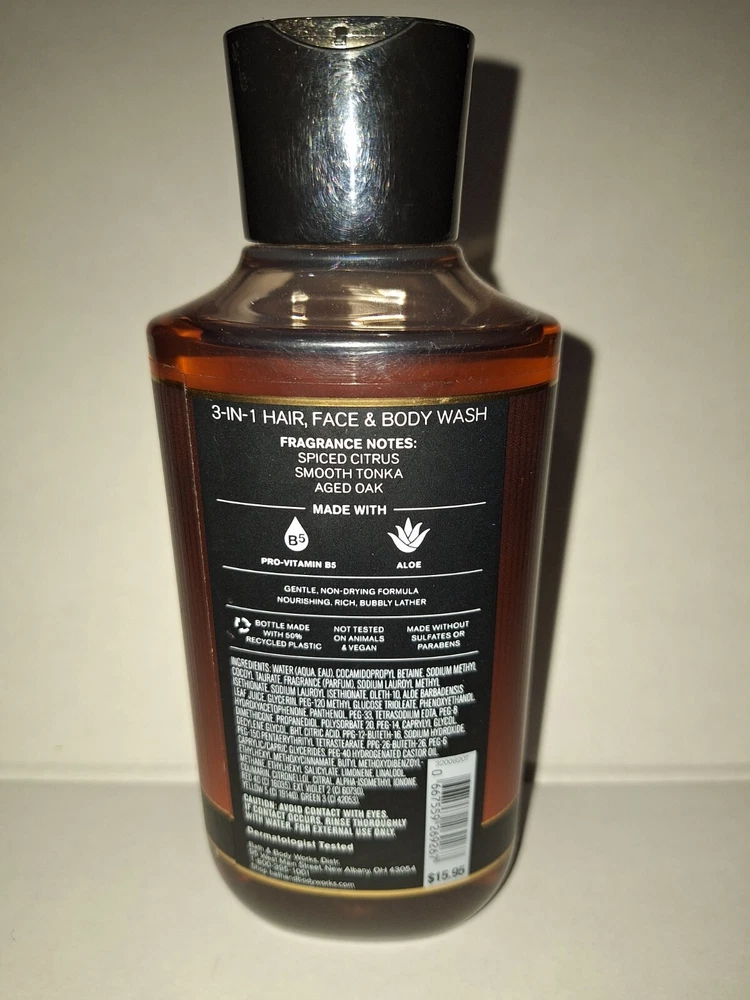 Bath & Body Works Single Barrel Bourbon Men's 3 in 1 Face Hair & Body Wash
