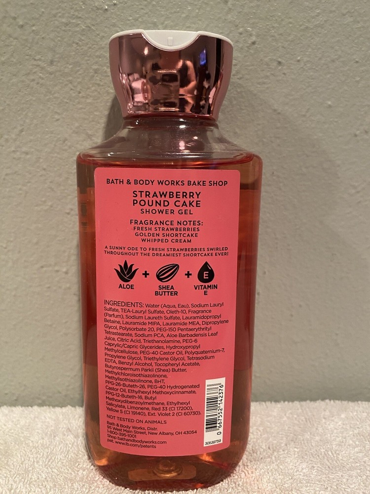 Bath Body Works Strawberry Pound Cake Shower Gel 10 oz Body Wash Shea Vitamin E.
