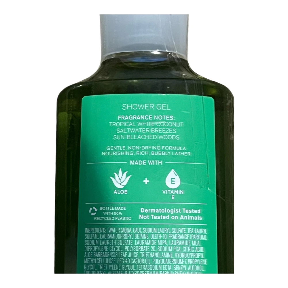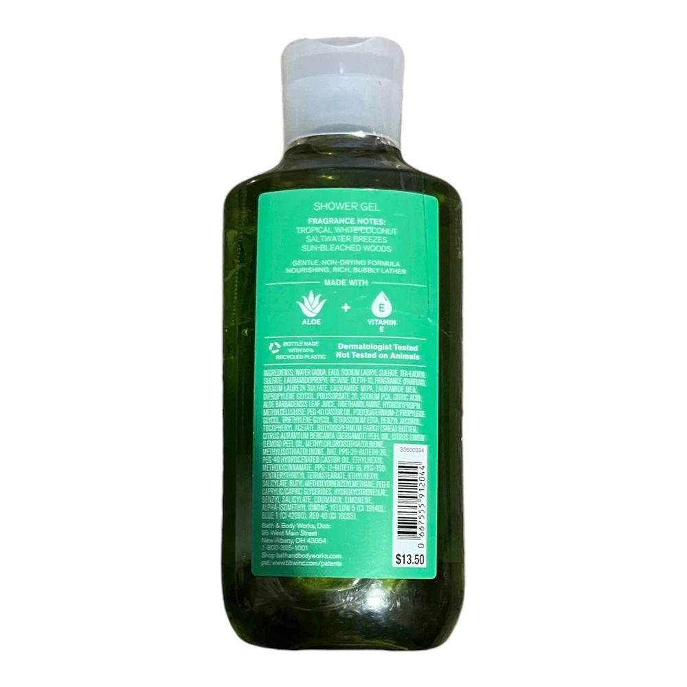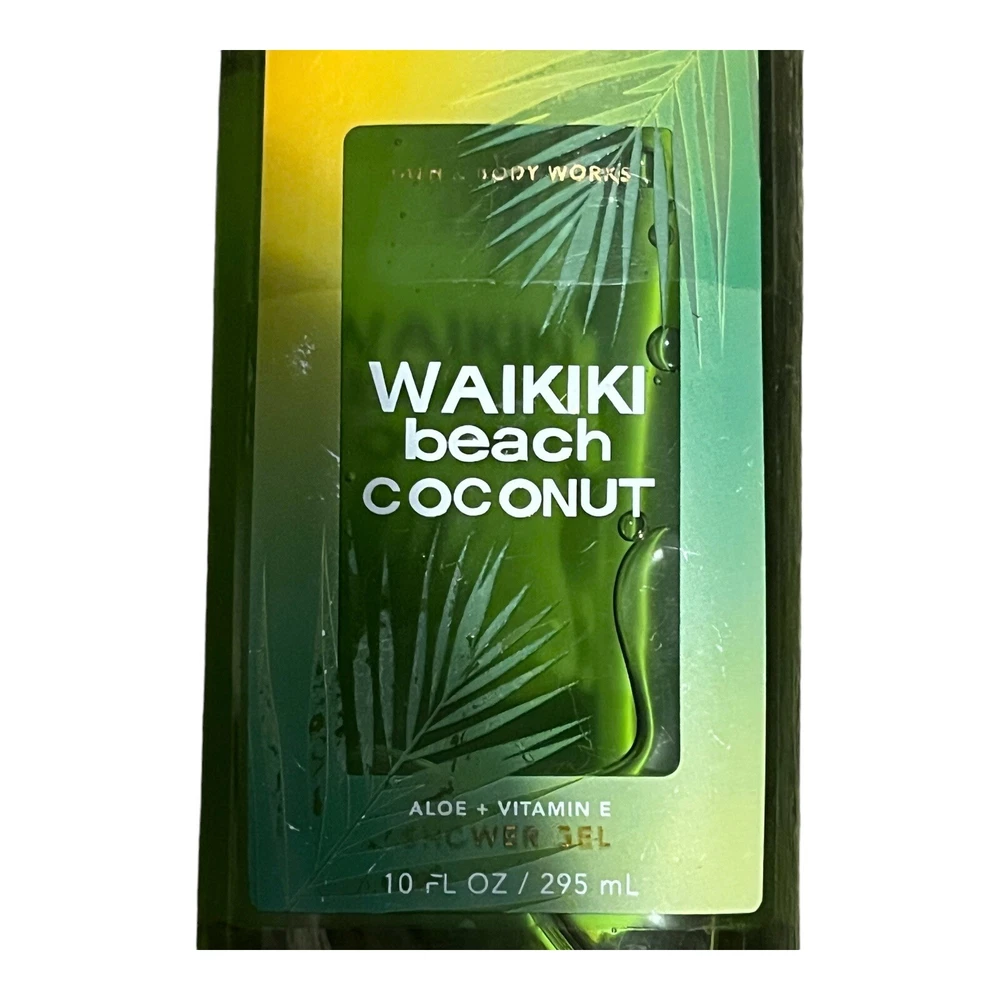 Formulation:GelType:Shower GelProduct Line:Bath & Body Works Shower Gelgtin13:667555912044Volume:10 fl ozBrand:Bath & Body WorksFragrance Name::Waikiki Beach CoconutUPC:667555912044Country/Region of Manufacture:United StatesScent:CoconutBody Area:BodyIngredients:Vitamin EDepartment:Unisex, Women
