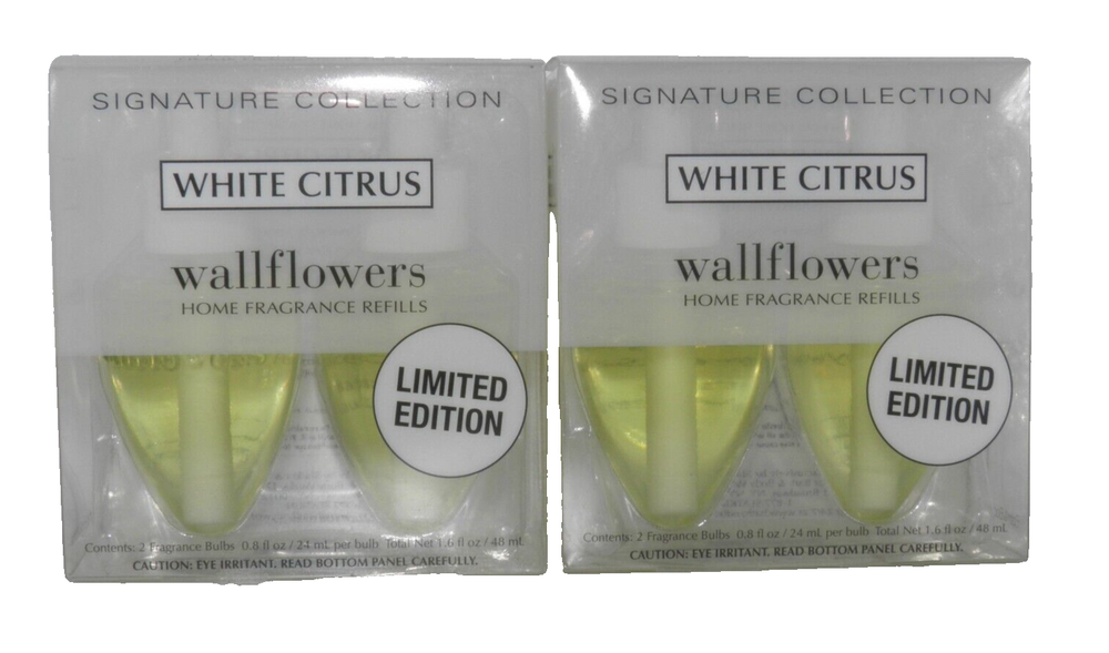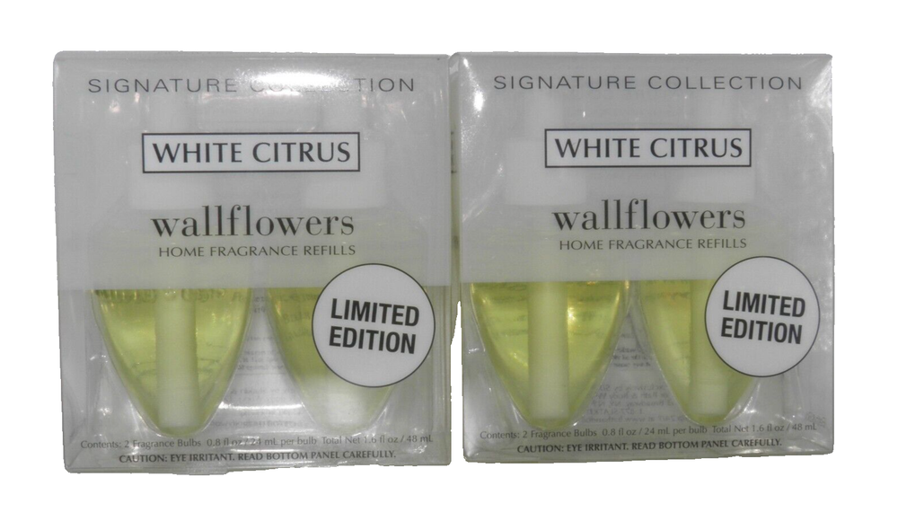 Bath Body Works WHITE CITRUS WALLFLOWER FRAGRANCE REFILL BULB (2 X 2 PACK) 4 X BULBS TOTAL WALLFLOWER UNITS SOLD SEPARATELY Mailing Address - We cannot change the shipping address after purchase. This policy is in place for the protection of the buyer and seller. Before making a purchase, please ensure that your address is correct. We cannot change the address after purchase and will otherwise cancel the sale. Handling Time - Our handling time is set to THREE BUSINESS DAYS. We ship packages Monday - Friday, except on holidays . This listing is NOT sponsored by, affiliated with, or representative of the mentioned brand(s), trade name(s), or trademark(s) and does not claim any ownership of such. All trademarks or brands mentioned in this listing are registered trademarks of their original owners who reserve all their rights and ownership. The use or mention of any trade name, product name, or trademark is necessary for identification and is for reference purposes only