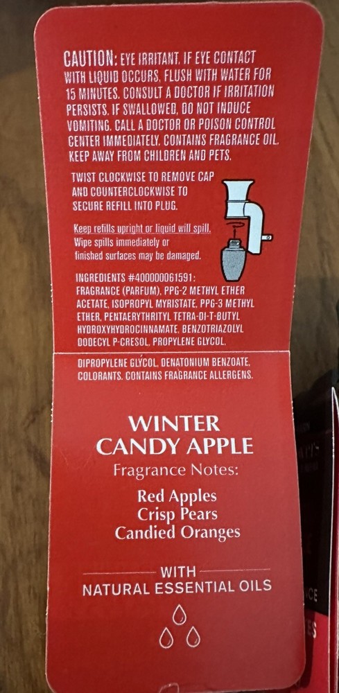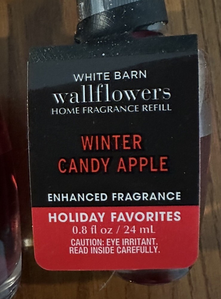 Fill your space with the delightful aroma of Bath & Body Works WINTER CANDY APPLE Wallflowers Refills. This set includes four 3.2 fl oz glass bulbs that emit a captivating scent combining crisp pears, candied oranges, and red apple. Perfect for any room, these refills are designed to be used with the Wallflowers Plug In Diffuser, enhancing the ambiance with a warm and inviting fragrance that's ideal for all occasions. Crafted in the United States, these authentic refills from the renowned Bath & Body Works brand are a great addition to your home or office. The oil form factor is easy to use, providing a consistent and pleasant aroma without the need for humidity control. The festive red color complements the holiday favorites theme, making these refills a charming and functional choice for aromatherapy and everyday enjoyment.