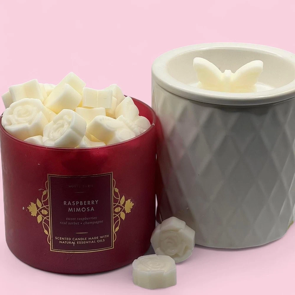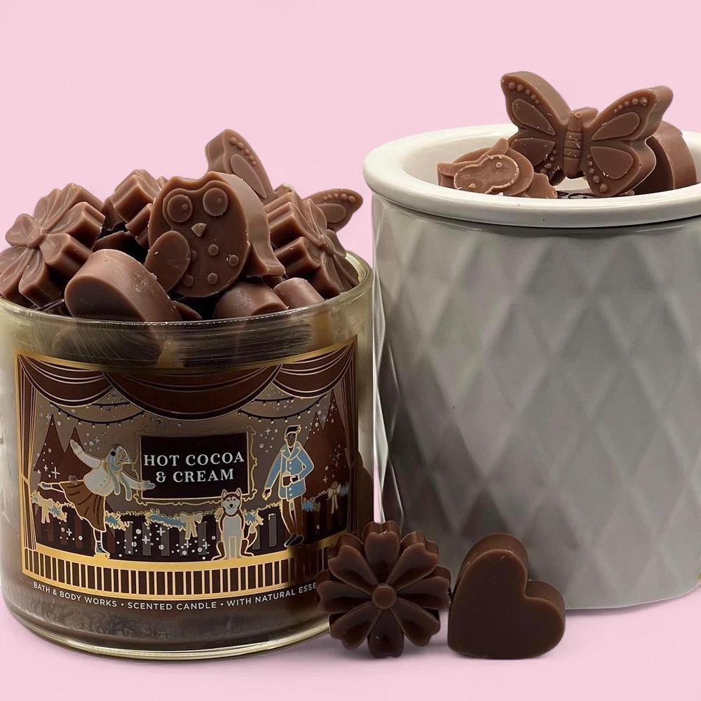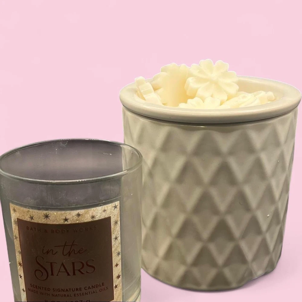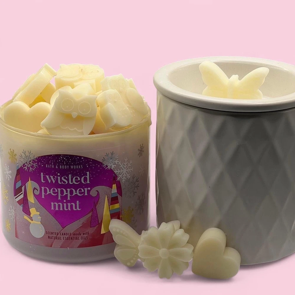 2 oz of Bath and Body Works Wax Melts ~ Hand poured so may contain imperfections like air bubbles. Always used from brand new never burned bath and body works candles. ~ Please note every package is unique in wax shape, size, and thickness. However, every package contains the same amount of wax by weight (2 oz). For example some melts are large enough to use just one at a time, others you may need 2 for the same effect. ~ I am not responsible for wax melting during shipping, I recommend retrieving the package as soon as delivered due to weather. ~THE JAR AND WARMER ARE NOT INCLUDED IN PURCHASE~