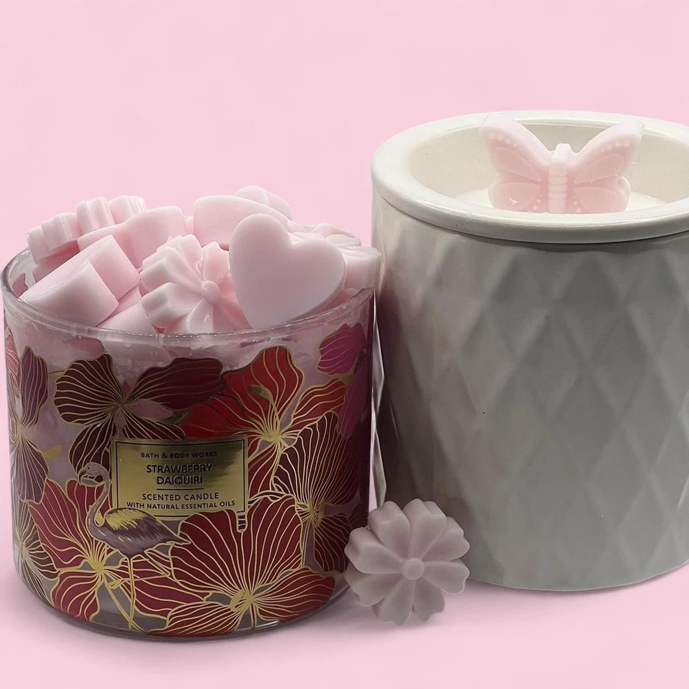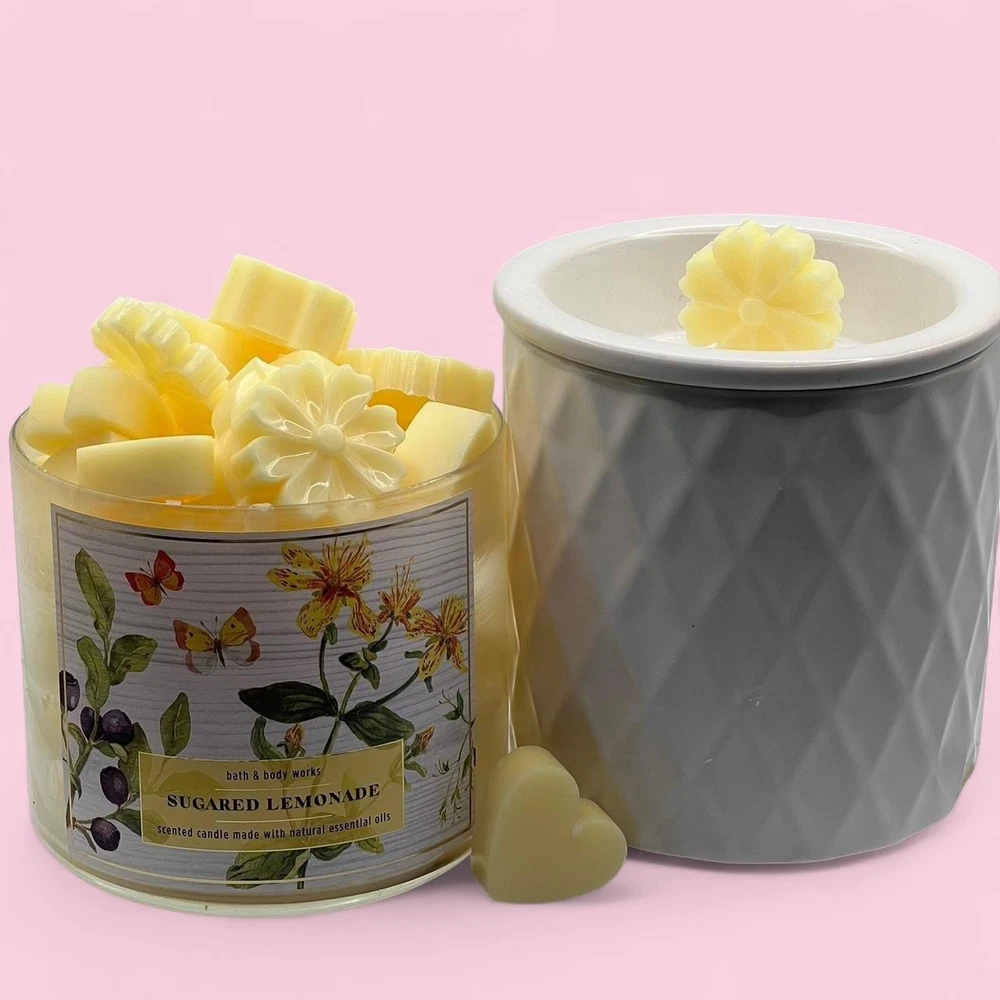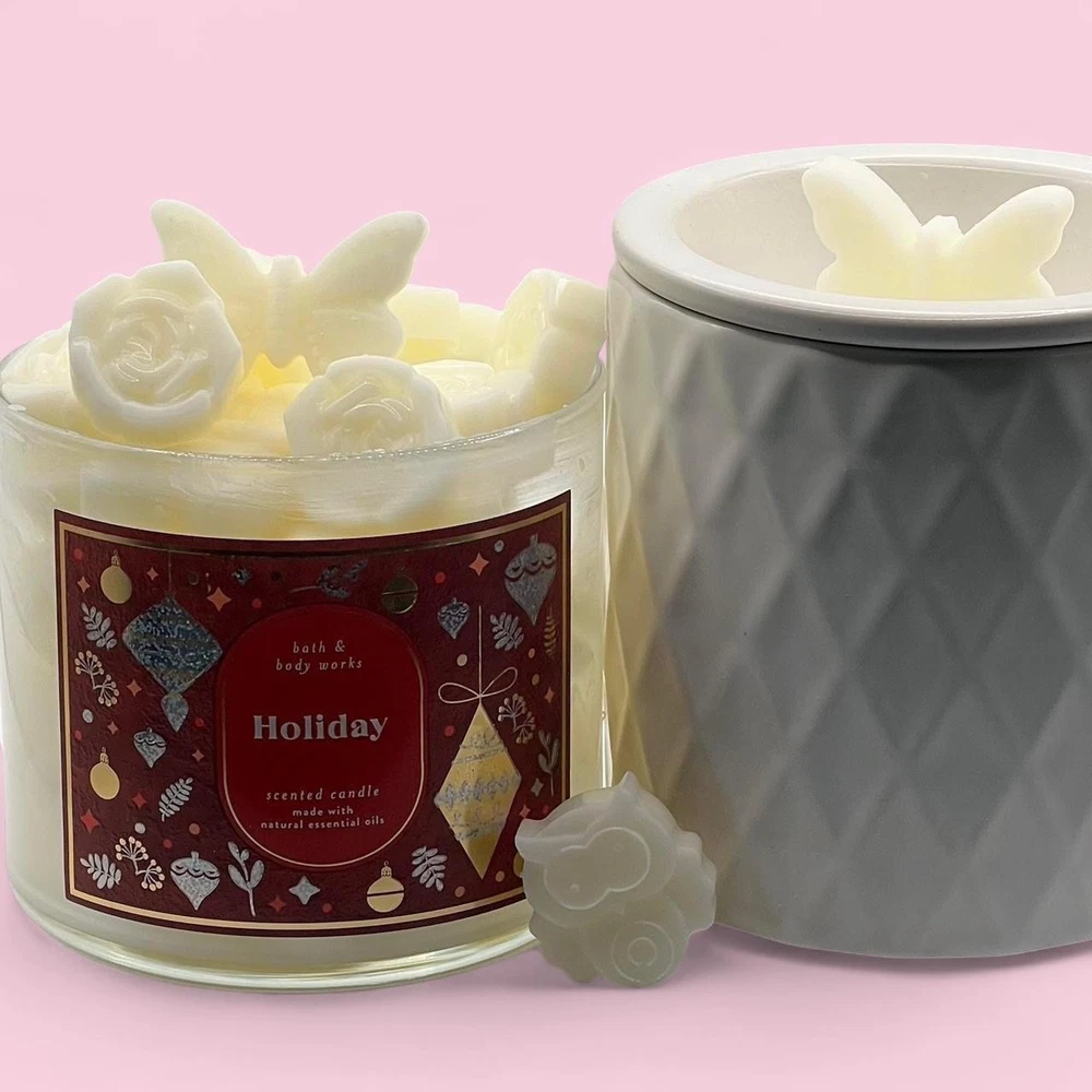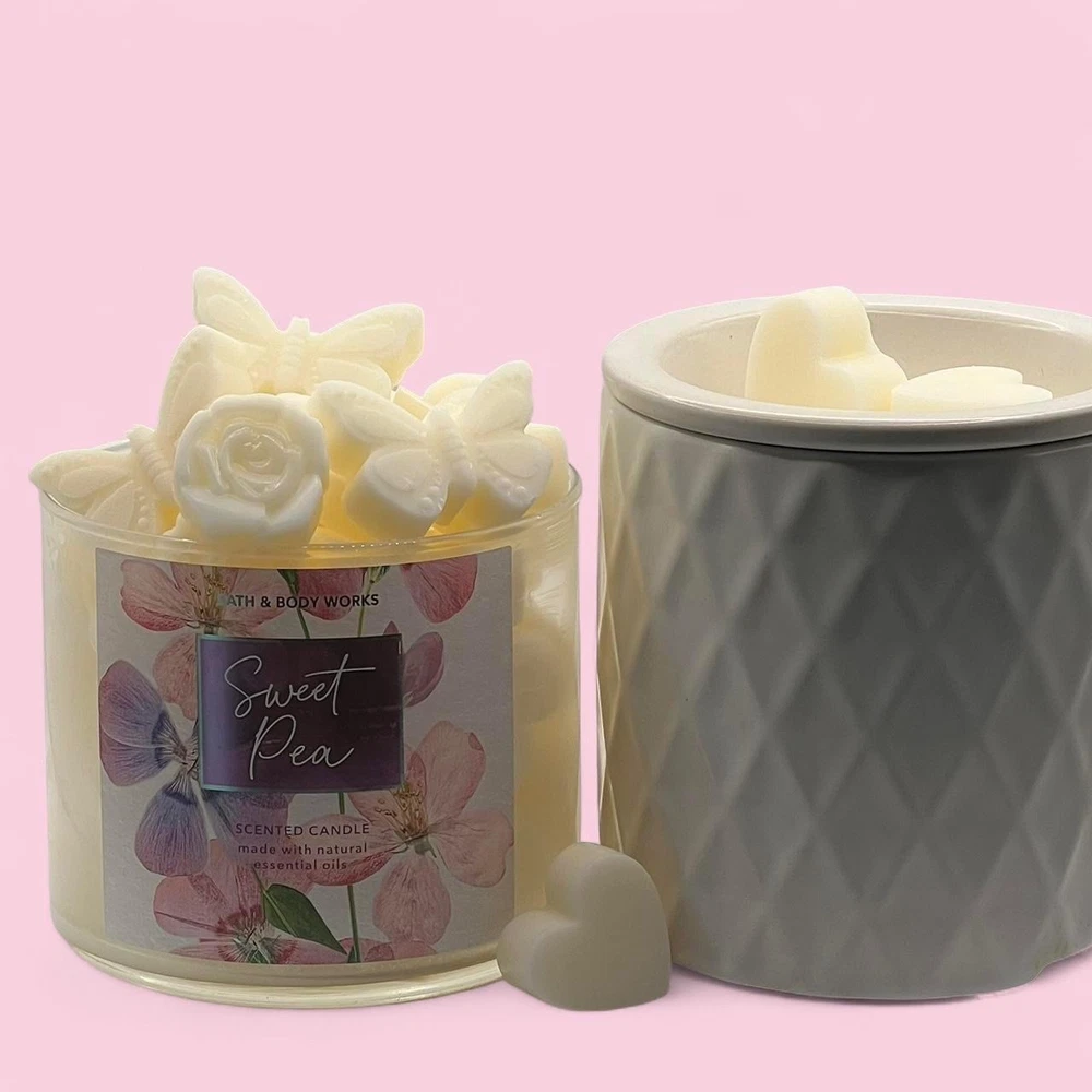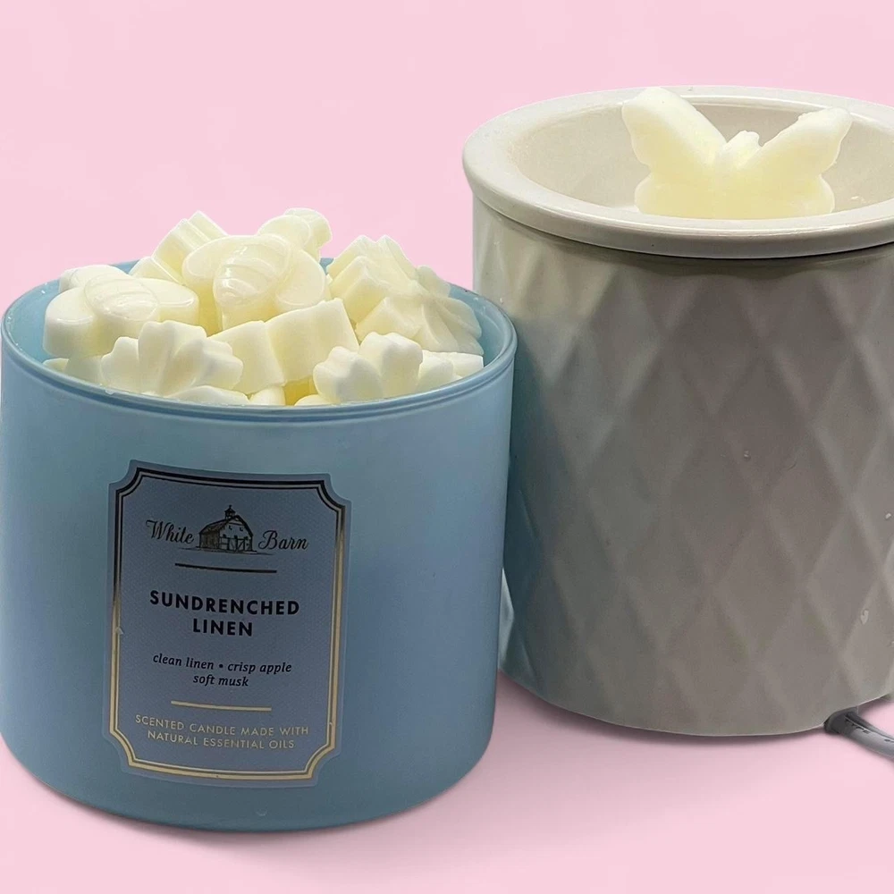 2 oz of Bath and Body Works Wax Melts ~ Hand poured so may contain imperfections like air bubbles. Always used from brand new never burned bath and body works candles. ~ Please note every package is unique in wax shape, size, and thickness. However, every package contains the same amount of wax by weight (2 oz). For example some melts are large enough to use just one at a time, others you may need 2 for the same effect. ~ I am not responsible for wax melting during shipping, I recommend retrieving the package as soon as delivered due to weather. ~THE JAR AND WARMER ARE NOT INCLUDED IN PURCHASE~