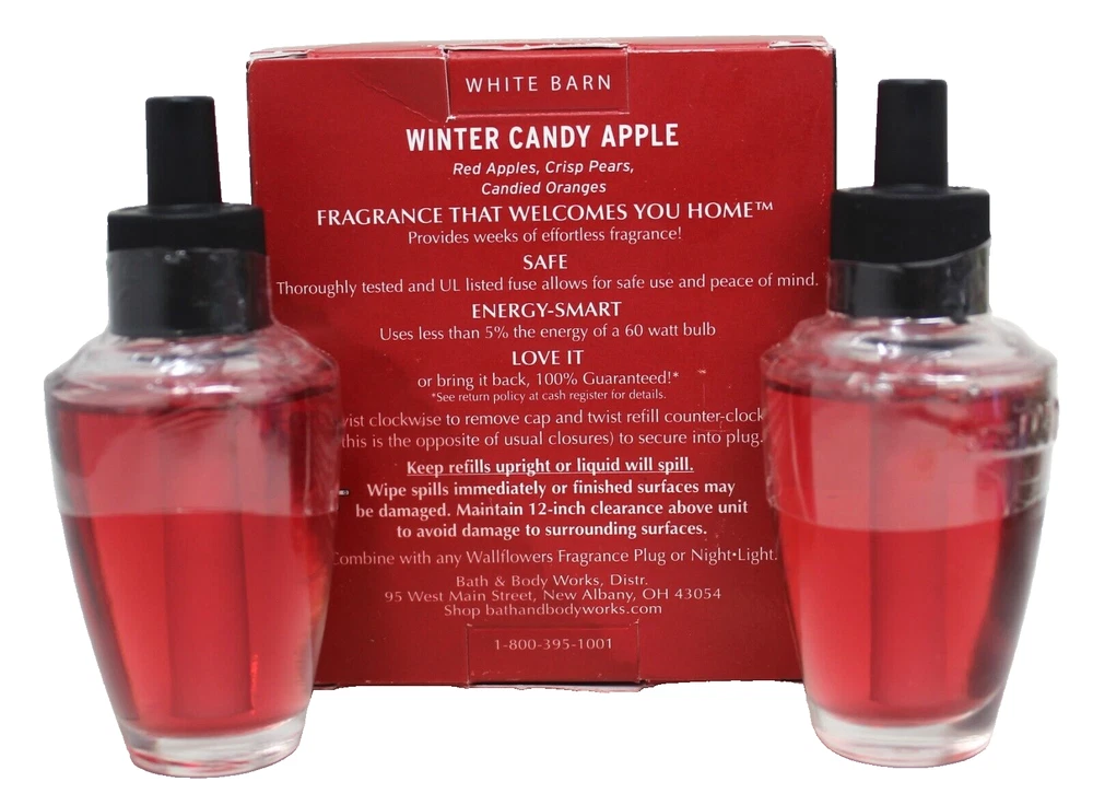 <div style="text-align:center"><img src="http://ti2.auctiva.com/sw/java.gif" border="0"><br><table align="center"><tr><td><a style="text-decoration:none" href="http://emporium.auctiva.com/Dimpl28" target="_blank"><img src="http://ti2.auctiva.com/sw/browse2.gif" border="0"></a></td><td height="21px" valign="middle" align="center"><font face="arial" size="2"><b><a href="http://emporium.auctiva.com/Dimpl28" target="_blank">Dimpl28</a> Store</b></font></td></tr></table></div> <img src="http://ti2.auctiva.com/web/aswCredit.gif" border="0"><br><a href="http://www.auctiva.com/?how=scLnk0" target="_blank"><img src="http://ti2.auctiva.com/images/sc1line0.gif" border="0"></a> Dx3 Bath & Body Works WINTER CANDY APPLE Wallflowers Plug In Refill Bulb Lot 2 red We have been selling on eBay since 2002 and have always had a good standing with eBay due to our integrity. All our products are 100% authentic. To sell anything other than that is illegal and immoral. We do not ship internationally unless it's to a military address, in which case, we are honored to do so. All orders are double checked before shipping out to avoid any mistakes. We are honest and upfront about items and the condition of items. Once an item is purchased, the address cannot be changed nor can the order be canceled. Our handling time is 2 days, unless we’re out of town and then it will be changed to reflect any delay. Our customers make this business possible and I truly appreciate each & every one of you! Thank you!