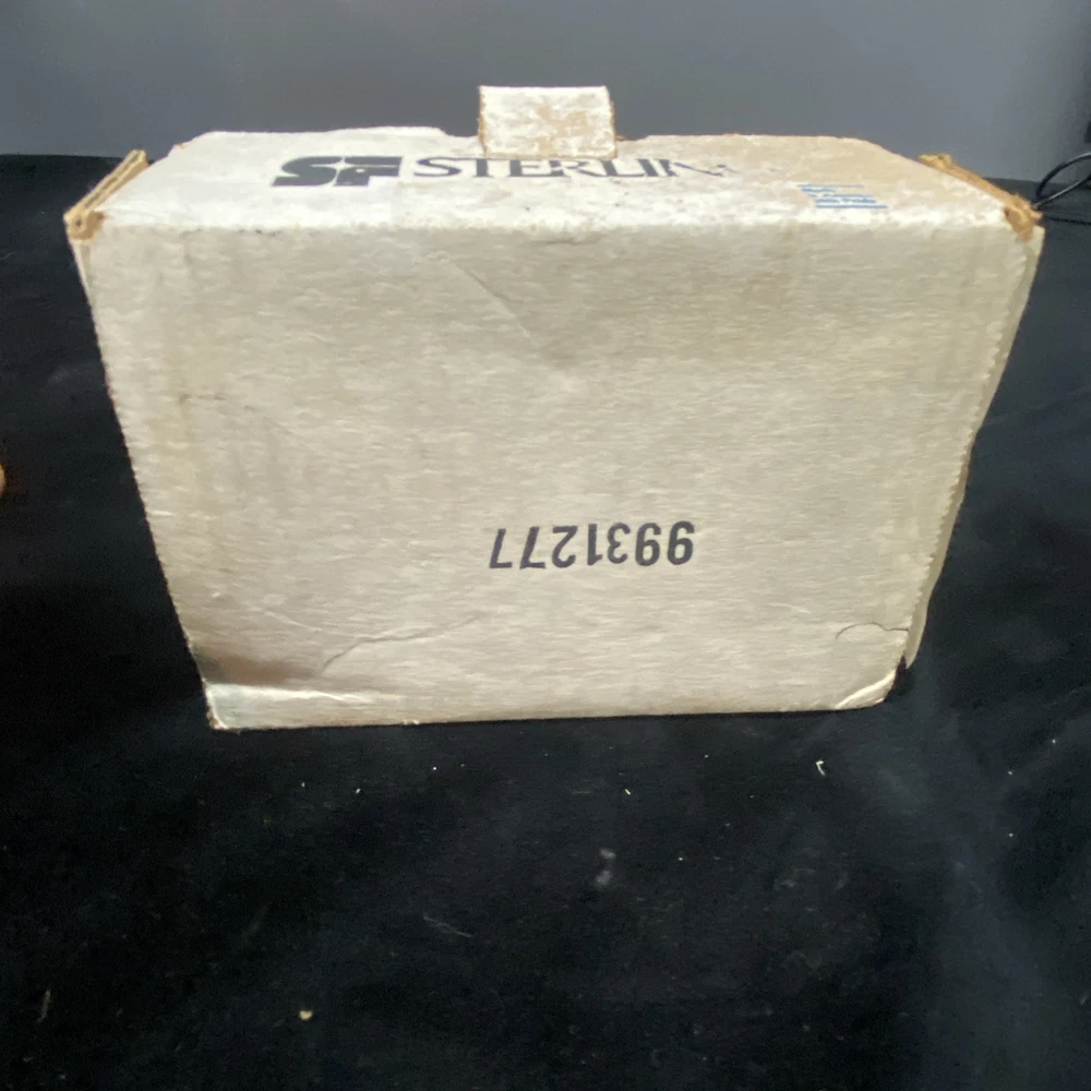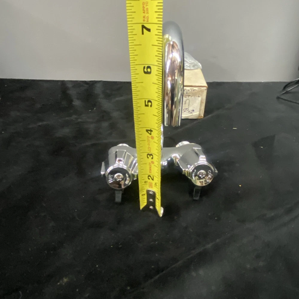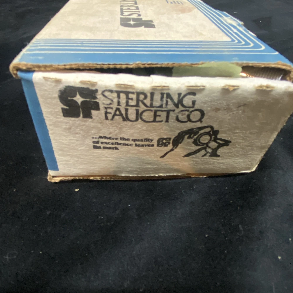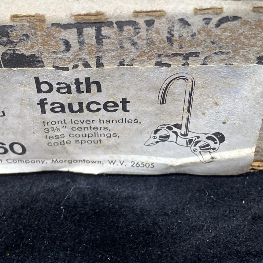 The Sterling Bath Faucet is a vintage, never-used piece with front lever handles and a polished chrome finish. Made of brass with a 3 3/8 center spout, this bathroom faucet adds a touch of retro charm to any room. Perfect for homeowners looking to upgrade their bathroom with a classic and timeless design. In unused excellent condition. Box is damaged and worn.