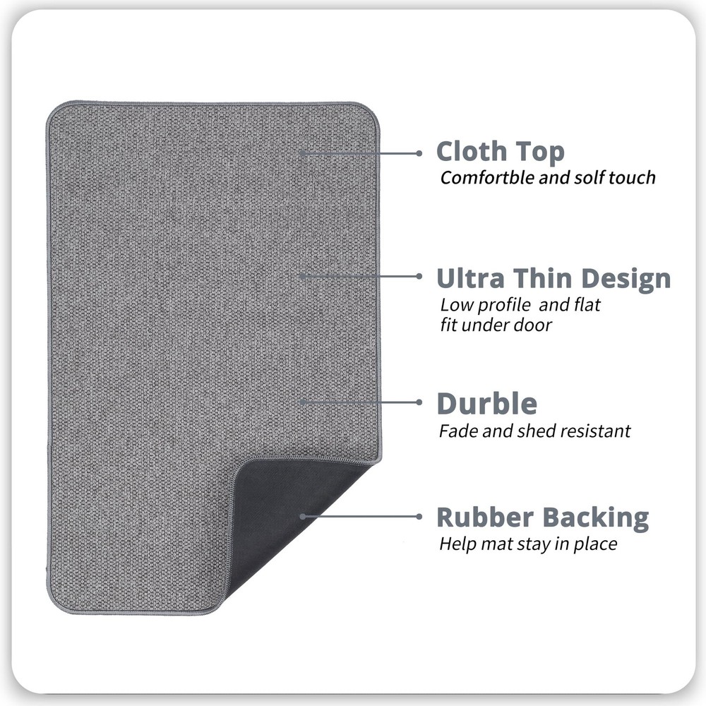 Thin anti-slip bathroom floor mat< br > Feature:< br > -Ultra thin fit under door< br > -Super absorbent & quick drying< br > -Machine washable< br > -Bathroom mat with rubber backing< br > Specification: Color:/Grey/Beige/Blue/DarkGrey/Green/White/Brown/Black< br > Size:24x36inch< br > Material:Terry cloth and rubber< br > Package: 1 x Bath Mat ULTRA THIN BATH MAT - If you are looking for a bath rug that can fit under the door, here it is. Our bathroom mat features a thin enough rubber backing at the bottom that can fit under the door. With a thickness as low as 0.2 inches, you can place the non-slip bath mat behind a door without being entangled with fluff upon closing the door. SUPER ABSORBENT QUICK DRYING BATHROOM RUG - As high quality bathroom accessories,this bathroom rug mat is made from terry cloth, one of cotton.This material can immediately dry your feet when you step on them, keep the water to stay on and in the mat and not spill over onto the floor,and prevent the floor from getting wet. BATHROOM RUGS WITH RUBBER BACKING - Wet tile floor makes slip and fell after you take a shower. For safety, you need a bath mat that doesn’t move around and has great traction. Our bathroom rugs with rubber backing, lay the anti-slip mat on the floor and keep you safe! EASY TO CLEAN - Bathroom rug mat are easy to clean and maintain. You can wash the thin bathroom mat by hand or by wash machine. It will never fade or crack after washing. Please note: machine wash with cold water and mild detergent (no chlorine or bleach), dry at low speed and temperatures. WIDE USE - Our bath mat is not only suitable for use in the bathroom as a charming addition to bathroom decor but can also be used in various other areas of your home. Whether it's in the kitchen, laundry room, entryway, or any other high-traffic area,Its durable construction and non-slip rubber backing make it perfect for any space where you want to enhance safety and comfort.