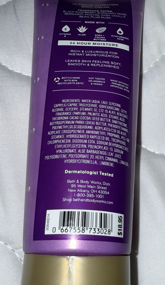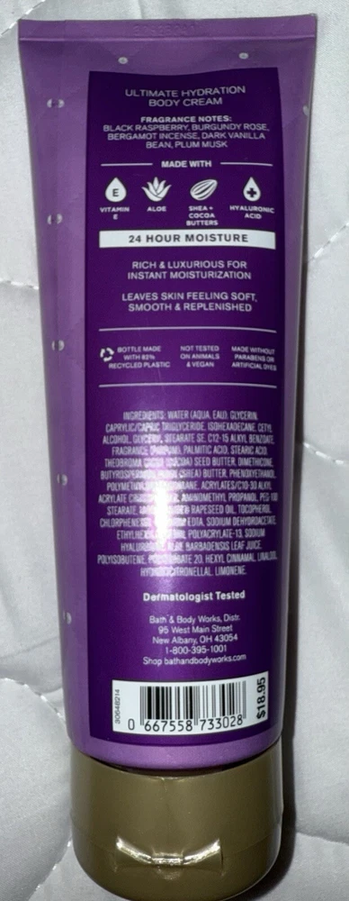 Bath and Body works DARK KISS Ultra Shea Body CREAM lotion 8 oz, New and never been used, but outside body has some wear from being stored in box.