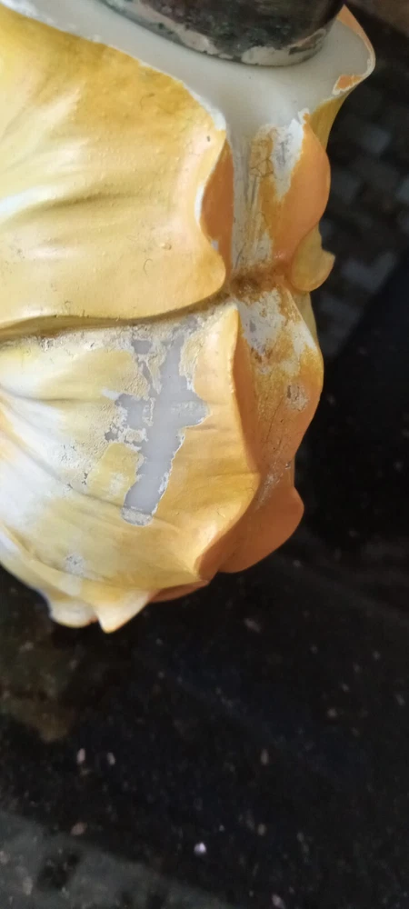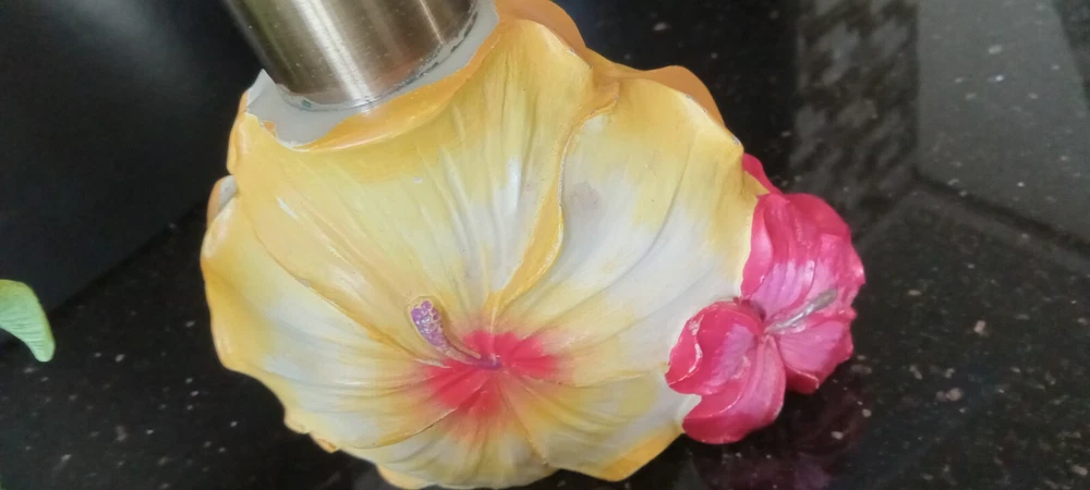 ADORABLE SET! YOUR GUESTS WILL LOVE THESE! THERE IS SOME SLIGHT EROSION AROUND PUMP BASE, AND SOME MISSING PAINT ON SOAP HOLDER BUT IT IS SLIGHT ON ONE SIDE SO I DOUBT ANYONE WILL NOTICE. I MAINLY USED IT FOR SHOW DECOR.