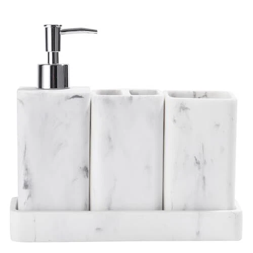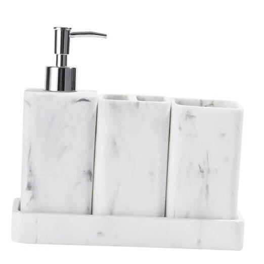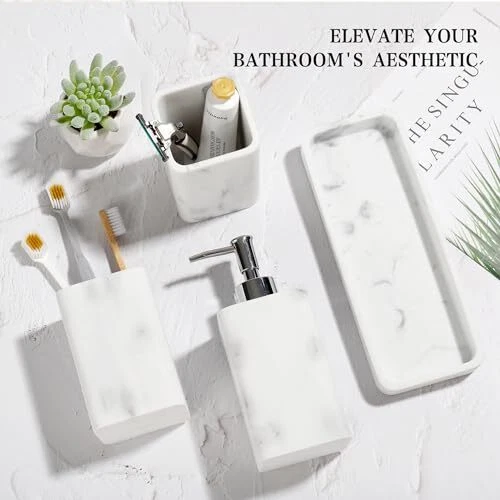 Return Policy Fast Delivery Trusted seller Bathroom Accessories Set, 4 Pcs Bathroom Accessory Set, Soap Dispenser, Toothbrush Holder, Qtip Holder Set, Bathroom Sets Complete, Bathroom Sink Set for Modern Home Decor, White Product Description Resin 【4-Piece Bathroom Accessory Set】: Elevate your bathroom with this 4-piece set featuring a lotion dispenser, glass, toothbrush holder, and storage tray. 【Marble Look Style】: This bathroom set features a marble-look design that complements a range of styles, adding a touch of elegance to your space. 【High-quality Resin Material】: These bathroom accessories are made of sturdy resin with a premium texture that is not easy to break and will not leave marks on the countertop, ensuring hassle-free cleaning. 【Efficient Bathroom Organizer】: The Bathroom tumbler is perfect for makeup brushes, the toothbrush holder accommodates beauty tools or razors, and the tray neatly stores glasses, watches, or jewelry. 【Versatile Bathroom Set】: This set fulfills most of your bathroom needs, and the tumbler can be used in the bathroom, vanity, or kitchen sink for easy organization. 【Best Gift Choice】: Functional and beautiful design make this 4 pieces bathroom accessories set a great gift for housewarmings, weddings, birthdays, Mother's Day, Thanksgiving, and for loved ones like moms, sisters, colleagues, and friends. After-Sales Support: Our dedicated after-sales team is to assist you with any questions or concerns. We provide 12 months of free parts replacement and are committed to ensuring your satisfaction. If you have any questions, please feel free to contact us. Thank you for choosing us! Shipping Returns Payment Shipping Shipping is FREE to all addresses other than APO/PO boxes in the lower 48 states. All our stock ships from US-based warehouses. Shipped via USPS or UPS (depending on location and package weight) Unless stated otherwise, all orders will ship within 24-72 hours of your payment being processed. Check our feedback to see the great reviews of FAST shipping we offer. Returns Seller does not accept returns Payment We currently accept payment via eBay managed payments only. Once payment is cleared, we will dispatch your shipment within 1-3 business days. Please refer to the "Shipping" tab for more information regarding shipping speed to your destination.
