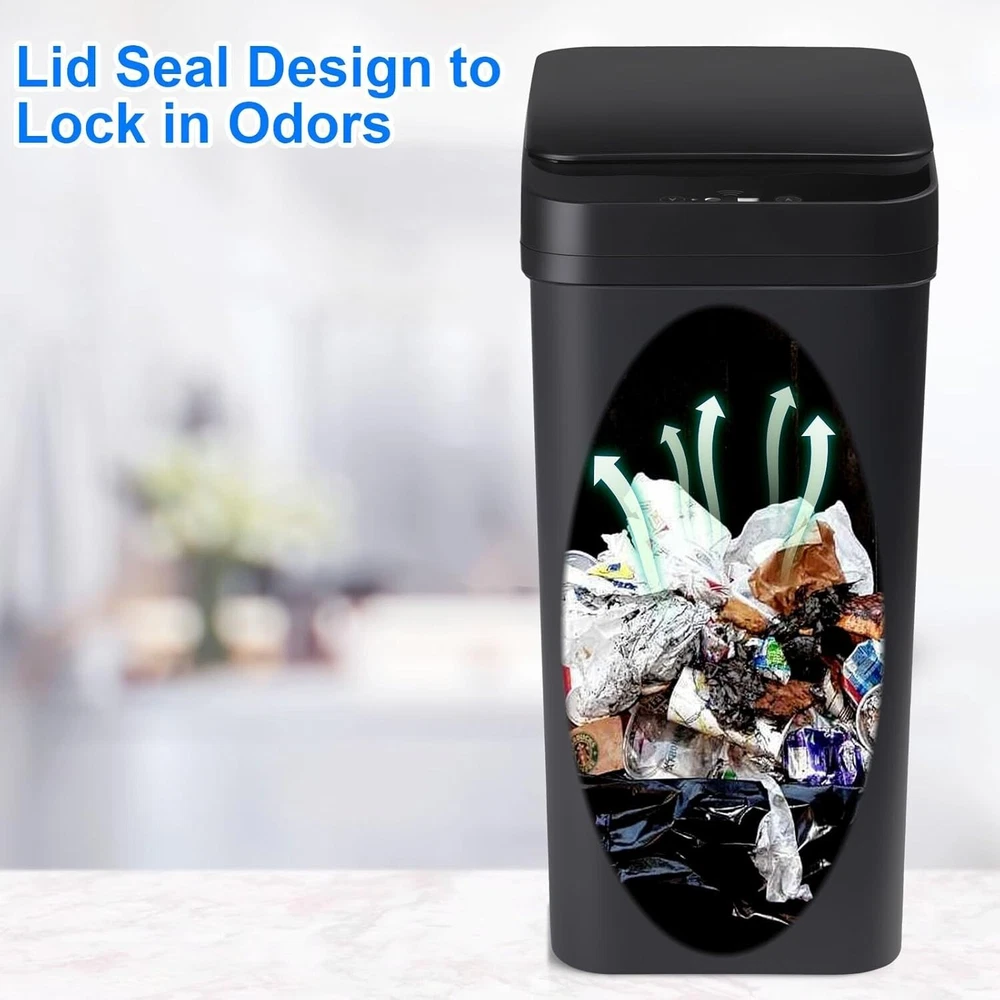 Small Trash Cans - The 2.2 gallon induction trash can is suitable for small bathroom narrow space and it will look smaller, if you mind, please buy other larger trash cans. High Quality Material, Easy to Clean - The non-contact bathroom trash can is made of excellent plastic materials such as ABS+PP, the surface is long-lasting and smooth, it can easily remove the dirt on the surface of the trash can with just one touch. Save Space at Home and Control the Spread of Odors - The ultra-thin bathroom trash can with a 2.2-gallon capacity saves space and is ideal for limited space or tight crevices. After testing, this trash can has very good airtightness and can seal the odor of garbage. It is the perfect partner in your home. Easy to Install the Garbage Bags and Silent Design - The lid of the bathroom motion trash can is removable, it‘s convenient for you to put in and take out the garbage bag. The lid opens and closes silently and will not affect those around you. A detachable bucket ring can firmly fix the trash bag, and will not make it slip off. Seal Lid Design Sensitive Sensor - The non-contact trash can use infrared technology to save battery life, powered by 2 AA batteries (not included), and at the same time use waterproof and moisture-proof materials, it will not affect your use in the bathroom.