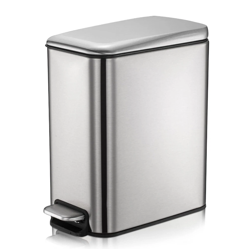 Enjoy the elegance and functionality of our Stainless Steel Bin to revolutionize your waste disposal experience. With its durable construction, thoughtful features, and timeless design, this trash bin will become an indispensable part of your daily routine. 【Premium Stainless Steel Bin】 The brushed stainless steel exterior is designed with anti-fingerprint coating. This ensures the bathroom trash can always looks flawless. Even when you clean with a damp cloth, there will be no streaks. Sturdy and durable for long-term use. 【Easy Access and Portability】 Steel -piece pedals give you stability and ease on the pedals. Step on the ergonomic pedal to open the bathroom dustbin and release the pedal to close. The bathroom bin allows you to dispose of your rubbish without touching the lid of the bin. 【Soft Close System】 Our trash cans use silent slow-down closing technology to effectively reduce closing noise. Let you rest and work without being disturbed by the sound of throwing garbage. 360° fully enclosed, effectively reducing odor, allowing you to enjoy a clean and healthy life. 【Easy to Clean】 The inner and outer barrels of the bin can be separated. The inner bucket with handle makes it easy to take out and clean up. Slim body design reduce space occupation, keep your bathroom organized. 【Wide Application】 This bathroom bin is extremely versatile and easy to use. It's ideal for bathroom, kitchen and the office.