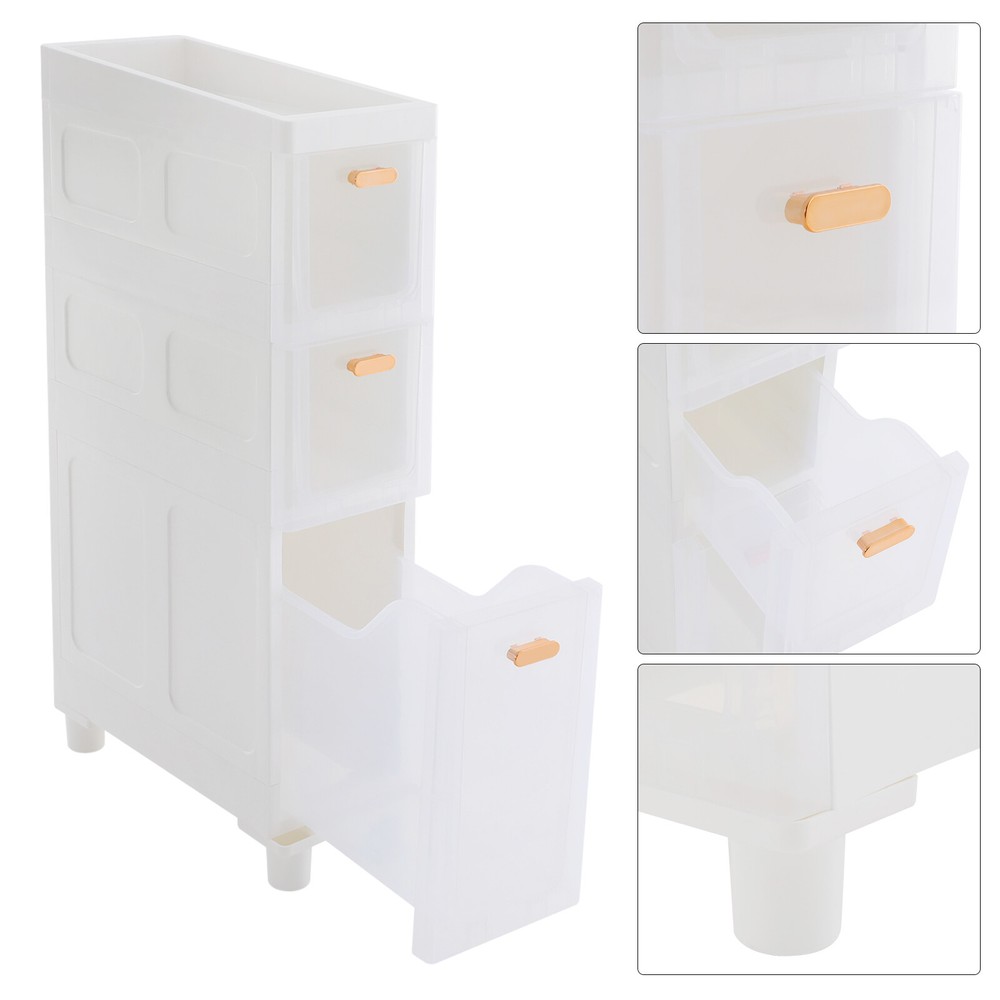 Bathroom Floor Storage Cabinet Narrow Slim Storage Cabinet Bathroom Organizer US T870A REWORK STATION Description In daily life, a neat and organized space can make us feel relaxed and happy. Let's take a look at this bathroom floor cabinet, which is made of premium PP material, sturdy and durable. Large capacity and 3-drawer storage space can meet your daily needs. The simple structure and smooth surface make it easy for you to install and clean. It is such a practical piece of home furnishing, bring it home soon! Key Features Sturdy and Durable: The premium PP material makes this product wear-resistant, waterproof, and less prone to deformation, ensuring long-term use in a wet environment. Storage Assistant: The product comes with 3 drawers of different sizes and a top compartment with raised edges for storing tissues, shampoo, cosmetics, towels, and other items, keeping your bathroom tidy and organized. The drawer design better protects items from getting wet and dusted. Thoughtful Design : The sturdy support feet with small pulleys raise the bottom to avoid moisture while allowing for higher stability and more convenient cleaning. Stylish Appearance: With an elegant white appearance and smooth lines, it shows a modern style and can decorate your bathroom well. Space-saving: Its small footprint (7.09*15.75 inches) and tall and slim design make full use of vertical space, making it fit into relatively narrow spaces in the bathroom. Easy to Clean: Thanks to the smooth surface and simple structure, you can wipe the dirt from it with a wet cloth(not included). Ideal Gift: This product is modern and practical and can be used as an ideal housewarming, birthday, and holiday gift for parents, friends, and loved ones. Buy with Confidence: We stand behind all our guests and look forward to assisting you with your purchase. It is our pleasure to answer your confusion and questions. The end of the story between us is not "we sell and you buy". Details Smooth Edge: The rounded and smooth edges not only add to the aesthetics of the product but also improve the safety of use. Clear Drawers: This design makes the placed items visible and allows you to find the items quickly. Practical Handles: They can be great for helping you open or close the drawers. Application The product can be used in bathrooms, kitchens, bedrooms, living rooms, laundry rooms, and other rooms for storing toiletries, cosmetics, towels, spices, skin care products, and more. Specifications Material: PP Style: Modern Color: White, Clear Assembly Required: Yes Mounting Type: Freestanding Indoor/Outdoor Usage: Indoor Number of Drawers: 3 Each Tier Load-bearing Capacity: About 2.5kg/5.51lbs Product Size: 18*40*80.5cm/7.09*15.75*31.69n Package Size: 41.5*37.5*35cm/16.34*14.76*13.78in Gross Weight: 4.15kg/9.15lbs Net Weight: 3.5kg/7.72lbs Package Included 1* Bathroom Storage Cabinet Other Accessories for Assembly Notes Please check the size carefully before ordering. Please use the product within its weight capacity to avoid damage. Please allow the slight color difference caused by the shooting light and 1-3cm error due to manual measurement, and make sure you do not mind before you order. Payment Delivery details Terms of sales About us Contact us Payment We accept ebay payment 。 Fees such as import duties, taxes are not included in the item price or shipping costs. These charges are the buyer's responsibility. Delivery details Shipping: 2-9 working days to: USA Terms of sales We maintain high standards of excellence and strive for hundred percent customer satisfaction. Feedback is very important to us. We hope that you contact us immediately before you give neutral or negative feedback, so that we can address your concerns. It is impossible to address issues if we do not know about them! About us Your satis faction is our ultimate goal. We work hard to earn your trust and future business. Our certified technicians have tested each item before shipping. The unit comes with 1 year limited warranty on all manufacturing defects. a) If you receive a defective item, you may return it or ask for a discount. Please contact us within 14 days after you receive the package. b) What you returned must be intact and in its original packaging as re? u. Customer is responsible for shipping costs of the returned item. c) We will cover the cost of shipping back t with the shipping rate indicated in the registration page. We will send you a new unit or refund the full payment you paid. Thank you. Contact us Business Hour Business Hour: Monday To Friday: 8:30 AM to 5:00 PM (Beijing China time) Due to time zones, our reply to your questions may not be immediately. But within above working time, we will reply your email within 24 hours. If it's non-workdays, please kindly be patient and wait till Monday. Please contact us with ebay message. Please feel free to contact us if you have any questions. Monday To Friday: 8:30 AM to 5:00 PM (Beijing China time) Due to time zones, our reply to your questions may not be immediately. But within above working time, we will reply your email within 24 hours. If it's non-workdays, please kindly be patient and wait till Monday. Please contact us with ebay message. Please feel free to contact us if you have any questions. Brand Unbranded Type Bathroom Storage Cabinet Item Height 80.5cm Item Length 18cm Item Width 40cm Material PP Color White, Clear Mounting Freestanding Number of Shelves 3 Assembly Required Yes