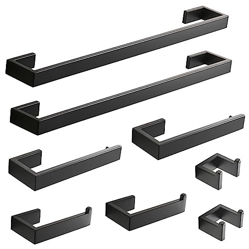 Return Policy Fast Delivery Trusted seller 8 Piece Bathroom Hardware Accessories Set Stainless Steel Matte Black Wall Mounted Product Description Stainless Steel 8-Piece Bathroom Accessory Kit Includes: 2x 23.6‘’ wall mounted towel bar, 2x 5.7'' toilet paper holder, 2x 8.26" towel ring and 2x 2.55''double robe hook. High Quality Bath Hardware Set: Stainless steel keeps the surface spotless with maximal maintenance.Beautiful matte black finish, build to resist scratches, corrosion and tarnishing. Concealed Screw Mount,Wall Mounted Take Advantage of The Unused WallSpace Through Out Your Home Making Your Home Seem Less Cluttered. Widely Use: Sleek surfaces, no sharp edges, safely hangs bathrobe, bath towel, pants and shirt, swimsuits, coats, bags, shower caddy or other stuff. Save Time and Money: You needn't to buy bathroom hardware accessory one by one,just buy a whole set directly .And buying the whole set is much cheaper than buying them individually. Easy To Install and Durable: We provide all the screw accessories needed for installation in the package, T is no need to worry about how to install, We will give you an installation instruction manual. Shipping Returns Payment Shipping Shipping is FREE to all addresses other than APO/PO boxes in the lower 48 states. All our stock ships from US-based warehouses. Shipped via USPS or UPS (depending on location and package weight) Unless stated otherwise, all orders will ship within 24-72 hours of your payment being processed. Check our feedback to see the great reviews of FAST shipping we offer. Returns Seller does not accept returns Payment We currently accept payment via eBay managed payments only. Once payment is cleared, we will dispatch your shipment within 1-3 business days. Please refer to the "Shipping" tab for more information regarding shipping speed to your destination.