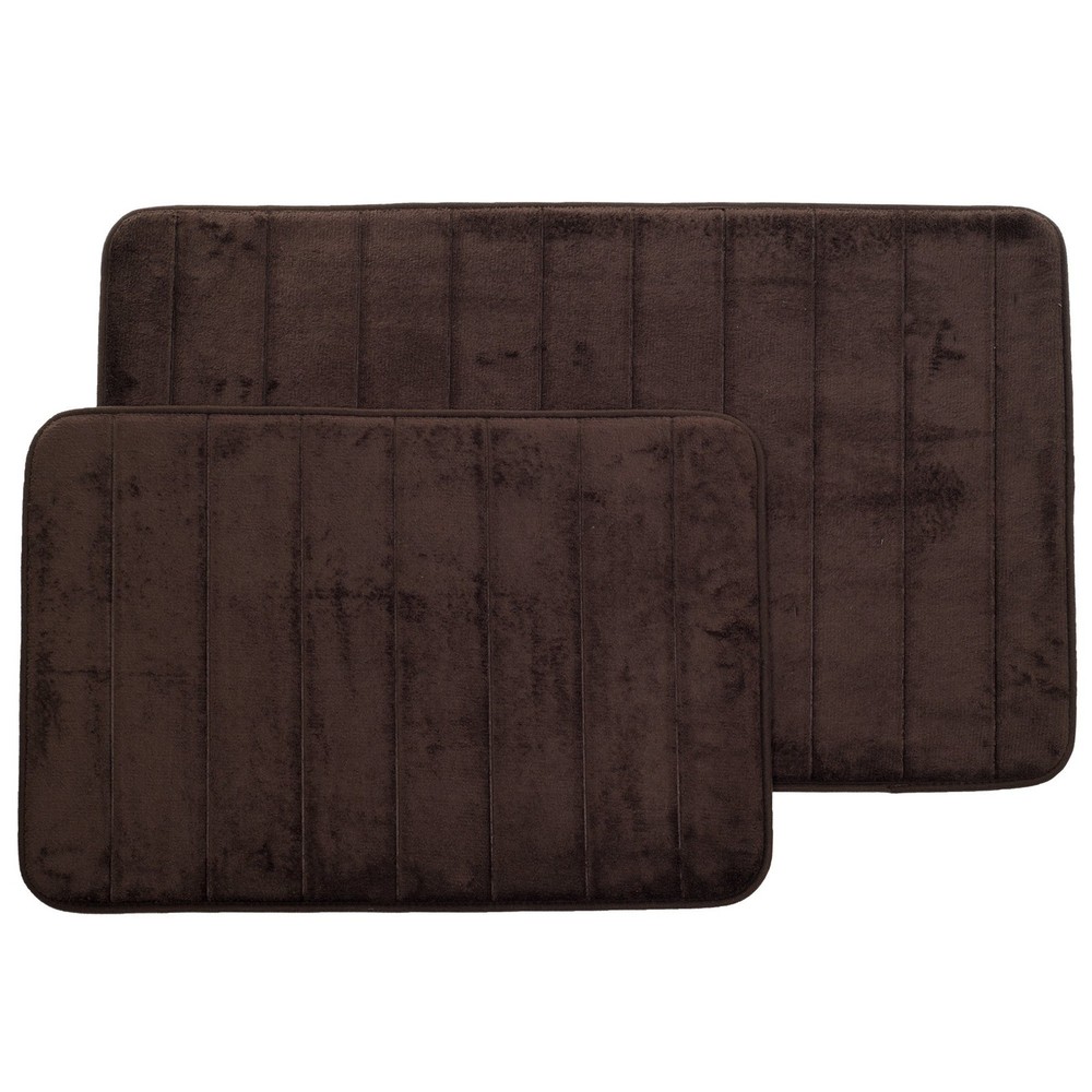 SET OF 2 BATH RUGS – This shower mat set includes one oversized 32-inch by 20-inch-long bath runner, perfect for tubs or double vanities, and one standard size 23-inch by 17-inch-long bathmat you can place in front of your toilet or pedestal sink. MEMORY FOAM – The 1/2-inch-thick layer of memory foam provides plenty of soft, cushioned comfort as you step out of your tub or shower. Each machine washable rug is easy to clean, to help keep your bathroom feeling tidy. ATTRACTIVE ACCENT RUGS – These bath rugs for bathroom feature a luxurious textured stripe pattern and versatile neutral color palette. They are sure to add a stylish accent to your laundry room, kitchen, bedroom, or bathroom décor. NONSKID AND ABSORBENT – The rubberized nonskid backing of each bath rug helps keep it in place while you dry off from your shower or bath. The woven microfiber top wicks away moisture to keep your floor safe and dry and is fast drying. PRODUCT DETAILS – Materials: Memory Foam, Microfiber, and Polyurethane Backing. Dimensions: Large – (L) 32” x (W) 20” x (H) 0.5”; Standard – (L) 23” x (W) 17” X (H) 0.5”. Bath Mat Set of 2. Machine Washable. Color: Chocolate Brown.