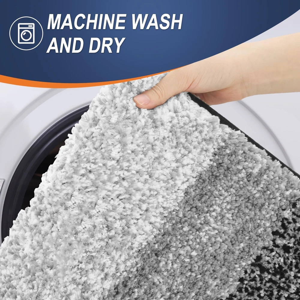CREATE YOUR BATHROOM OASIS We are dedicated to bringing our customers premium and functional household products at reasonable prices. Our vision is to continuously innovate and improve our products based on customer needs as well as current industry trends. With many different color and sizes to choose from, you will easily find rugs to coordinate with your decor! FEATURES: - 1 inches high density microfibers, very soft and comfortable for your feet to step on, plush to the touch. Unique gradient color stripe design - TP Rubber backing - Ultra absorbent - 100% machine washable TAKE A LOOK AT SOME QUESTIONS FROM OUR VALUED CUSTOMERS: ☛ IS THIS RUG STURDY AND LONG-LASTING? Our bath rug is constructed of the most premium, high-quality TP Rubber backing. This sturdy and strong material will help to keep your bath rug secure on your floor so you no longer need to worry about shifting or bunching. ☛ CAN I REALLY MACHINE WASH AND DRY THIS RUG? YES! We know bath rugs need to be cleaned often. That’s why we’ve made it simple for you. Our bath rugs can conveniently be thrown in any washing machine. For best results, lightly tumble dry. ☛ MY OLD RUG WAS ROUGH AND SCRATCHY ON MY FEET HOW IS YOURS DIFFERENT? Good Question. Our bath rug features a soft, 1.18 inches shag soft microfiber fabric that is a pleasure to step on after a bath or shower. The density of our piles is much higher than most other mats on the market. ☛ WILL THE RUG COMPLEMENT MY BATHROOM DECOR? Certainly! Our bath rug comes in an assortment of stylish, sophisticated colors that will be the perfect complement to any bathroom design or existing towels. You can also use this rug in multiple areas of your home such as your bedroom, laundry room, playroom, children’s room, or pet space. [Luxuriate in Pure Comfort] Indulge your feet in the softest, coziest microfiber imaginable. With its plush pile, nearly one inch thick, our bath mat soothes and warms your feet, protecting them from the cold floor below. Enhance your bathroom decor with 's captivating bath mat. The gradient color stripe design seamlessly merges stripes, creating an eye-catching pattern that infuses sophistication into your space. [Ultra-Absorbent and Quick-Drying] Our bath mat features a soft shaggy microfiber fabric that absorbs water as you step out of the bath, shower, or while getting ready by the sink. The mat's deep pile efficiently traps moisture, allowing it to dry quickly and keep your rug clean and dry. [Long-lasting and Sturdy] Unlike other brands that use PVC or hot glue, we've built ours with a resilient TP rubber backing. While PVC and hot glue weaken over time, our TP rubber mats are designed to withstand repeated washing and drying. WARNING: Water under the bathroom rug can cause it to slip. Keep bottom of the bath rug dry! [Easy to Clean & Care] Our bathroom mats are machine washable for simple upkeep when needed. Wash them in cold water on a gentle cycle, without using chlorine or bleach. For best results, tumble dry on low heat or air dry. To maintain the color and texture, avoid frequent machine washing. [Matching Collection, Beautiful Décor & Versatile] Elevate your bathroom decor with our elegant gradient color stripe mats, ideal for sinks, showers, and beyond. Coordinate with matching toilet lid covers and contour rugs for added warmth and style. Complete the ensemble with our complementing shower curtains. Perfect for enhancing your own space with sophistication.