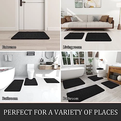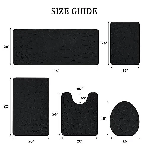 Menu 1. We require immediate payment. 2. We currently accept payment via eBay managed payments only. 3. Once payment is cleared, we will dispatch your shipment within 1-3 business days. Please refer to the "Shipping" tab for more information regarding shipping speed to your destination. Bathroom Rugs Sets 5 Piece, Cobblestone Memory Foam Bathroom Mats Set Extra Thick, Non Slip Bath Mats for Bathroom, Water Absorbent, Washable Black Bath Rugs for Tub, Toilet and Floor Product description 【Bathroom Rugs Sets】Bathroom rug set 5 pieces included large bath rug 20' x 46', 32' x 20' and 24' x 17' long Mat, 18' x 16' small mat, 24' x 20' U-Shaped counter rug.Several size and color rugs for choosing will perfectly match your bathroom,living room,vanity etc, also be the great gift ideas for friend, family. 【Super Soft And Comfort 】Thicker and better constructed memory foam bathroom mat, this super soft and ultra-comfortable bath rug provides comfortable experience for your feet. The Bathroom rug is specially designed to help you eliminate foot pressure and provide you with advanced support that other bath mats cannot provide. 【Super Non-Slip Backing】The bottom of the floor mat is made of a new drip dots molding technology process, prevent fading, which can sit firmly on the wooden and tile floor without damaging the floor. Please make sure that the bottom of the bath mat is dry and clean before each use to prevent the rug from slipping. 【Super Absorbent Bath Mat】 bathroom mat consists of soft velvet contact layer and thick memory foam filling, it can help to absorb water in seconds, allowing the rug to dry quickly and cleanly. protect your feet from the cold floor, and prevent the floor from getting wet, making your feet feel the ultimate luxury. 【Machine Washable Bath Rug】Durable material, our bath rugs will without fading, lint, or warping after multiple machine washes, and the water absorption and anti-slip properties will not be affected after drying. Please use neutral detergent to wash cold while washing. PLEASE MESSAGE US IF YOU HAVE ANY OTHER QUESTIONS, AND MANY THANKS FOR READING ALL OF THIS. Copyright ©#. All Rights Reserved.