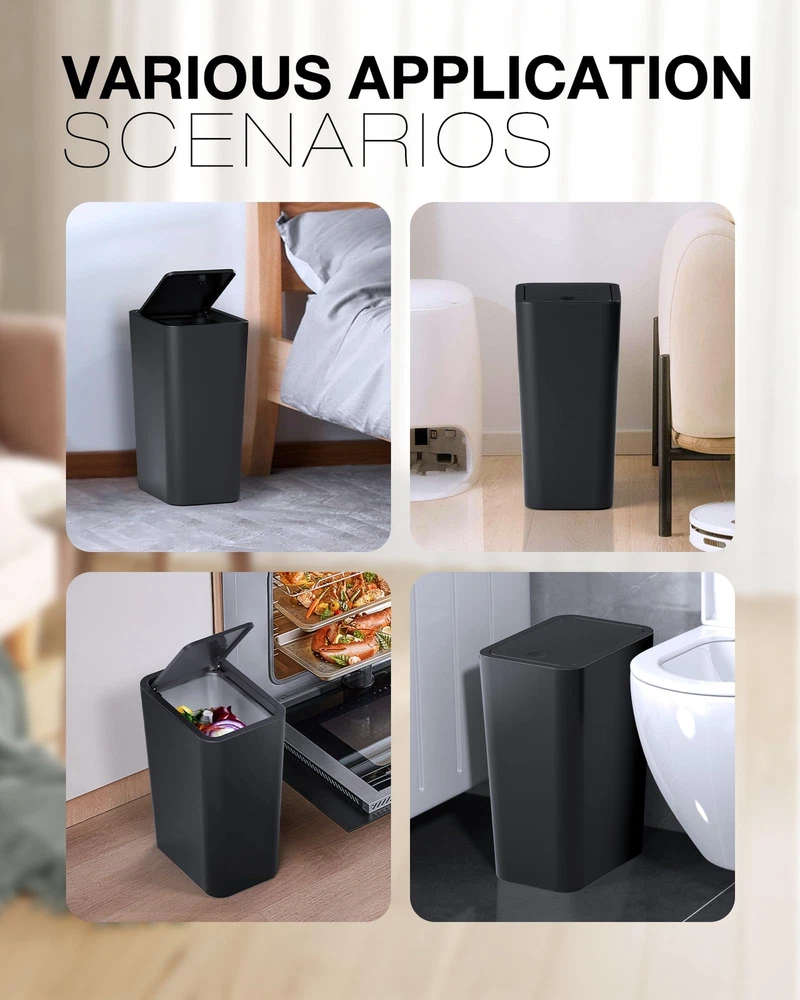 Suitable for Anywhere: This minimalist bathroom trash can is the perfect choice for your bathroom, bedroom, or kitchen. With dimensions of 10*7*13.98 inches and a capacity of 4 gallons(15 liters), this trash can fits seamlessly anywhere. Weighing just 1.46 pounds, it's incredibly lightweight and easy to move around Pop-Up Lid Design: The small trash can with lid features a pop-up design. Simply press the button lightly to open or close the lid, making it convenient and effortless without the need to struggle to lift the lid Odor Control & Pet-Proof: The trash can lid locks in odors tightly, saying goodbye to those dirty and unpleasant smells, preventing trash from overflowing and falling out, and ensuring that the indoor space always has fresh air. Additionally, the trash can with lid prevents pets from rummaging through the garbage Convenient Trash Bag Fixing Ring: The fixing ring securely holds the trash bag inside the trash can, preventing it from slipping or protruding, keeping the bathroom garbage can looking clean and beautiful, and the trash bag is also very convenient to put in and take out Robust and Easy to Clean: This bathroom trash cans with lids is made of high-quality ABS material, with thickened wall design, making it resistant to pressure and wear. Its smooth and elegant surface is easy to clean and maintain, ensuring long-lasting durability After-Sales Service: Please unpack and inspect our 2-pack trash cans upon receiving them, if you encounter any problems, please our after-sales team, we will answer you within 24 hours