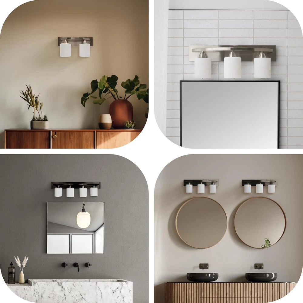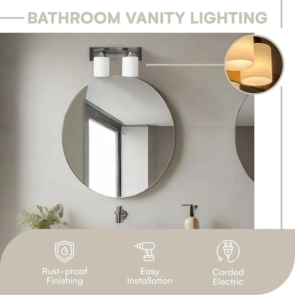 Store New Arrivals Add to Favorite View Feedback Contact Bathroom Vanity Light Fxiture - Interior Bathroom Lighting Bar with Modern Milk Glass Shade - Bathroom Lights over Mirror - Brushed Nickel, 2 Lights, E26 100W LED, Bulbs Not Included Description Light Source Type Halogen, LED, Fluorescent, Incandescent Item model number 1 Style Modern Number of Items 1 Power Source Corded Electric Number of Light Sources 2 Control Method App Switch Type Push Button Theme Modern Lighting Method LED Controller Type Push Button Unit Count 1 Count Room Type Bedroom, Living Room, Dining Room, Kitchen, Bathroom, Home Office, Vanity, Dressing Room Assembly Required Yes Installation Type Insert Material Glass Manufacturer Part Number 1 Efficiency High Model Name Bathroom Vanity Light Fixture Finish Type Brushed Specific Uses For Product Home Included Components 10 pool cover anchors and 10 head screw bolts Indoor/Outdoor Usage Indoor Brightness 1600 lumen Country of Origin China Light Color White Water Resistance Level Not Water Resistant Item Weight 3.9 pounds Light fixture form Vanity Special Features Dimmable Special Feature Dimmable Bulb Base E26 Shade Color Clear Mounting Type Wall Mount Color Brushed Nickel Wattage 100 watts Shape rectangular prism Voltage 120 Volts Recommended Uses For Product Bathroom Lighting Shade Material Glass Fixture Type Non Removable Product Dimensions 6.69"L x 17.72"W x 8.27"H Size 2 Lights Sleek Modern Aesthetic: Designed for style and functionality, these bathroom lighting fixtures over mirror provide soft, flattering light for any bathroom space, enhancing decor. Size: Measuring 16" W x 8.5" H x 5.3" D, this fixture requires two 100W Type A bulbs for versatile lighting; bulbs are not included with this bathroom vanity light. Quick Installation: Includes necessary hardware for easy setup, allowing you to install your new vanity lighting fixtures in minutes without effort or special tools required Reversible Mounting Options: Install this versatile bathroom light fixture facing up or down to match your preferred look, bringing ambient lighting into any space Ideal for Stylish Bathrooms: Bring timeless charm and light to your space with these durable vanity lights for bathroom, featuring high-quality construction in a classic finish Product Description This Bathroom Vanity Lighting Can be Hung with the Light Facing Up or Down. It Can be the Ideal Decoration for Your Home and Other Locations. Weighted Base E26 Base (Max 100W) Line-Painted Glass Start Your Day Right with a Beautiful Illumination, Making Your Morning Routine a Breeze. ABOUT US We offer the best prices around on high quality products. Our E-store includes media such as books, movies, music and games while offering electronics, toys, sporting apparel, clothing, tools, general home, garden items and more. SHIPPING We are always working hard to ensure your package arrives as soon as possible. Please understand that some factors like weather, high postal traffic, and the performance of shipping companies are outside of our control. We offer free shipping to the lower 48 states and ship within 2 business days of payment, usually sooner. We do not accept P.O. Boxes. Please provide a physical address. For shipping outside of the continental USA, we only use eBay's Global Shipping Program.The item is shipped to KY and then sent to the rest of the world. International customers are responsible for all duties and taxes. Continue to check out in order to calculate costs for shipping the item to your country. Messages regarding eBay's Global Shipping Program MUST be directed at eBay EXCLUSIVELY. RETURNS We offer a 30-Day Return Policy on items which you are not completely satisfied with. You have the option for a full-refund or an exchange of the item. No returns are available on items shipped outside of the USA. PAYMENT We accept PayPal. CONTACT US This page content is yet to come Please ad us to your favorite seller and visit again later Thank You CUSTOMER SATISFACTION We try our very best to make sure every customer is completely satisfied. If there's a problem, message us! We're happy to help. WE ACCEPT Copyright © 2021 AutoDS. | All Rights Reserved