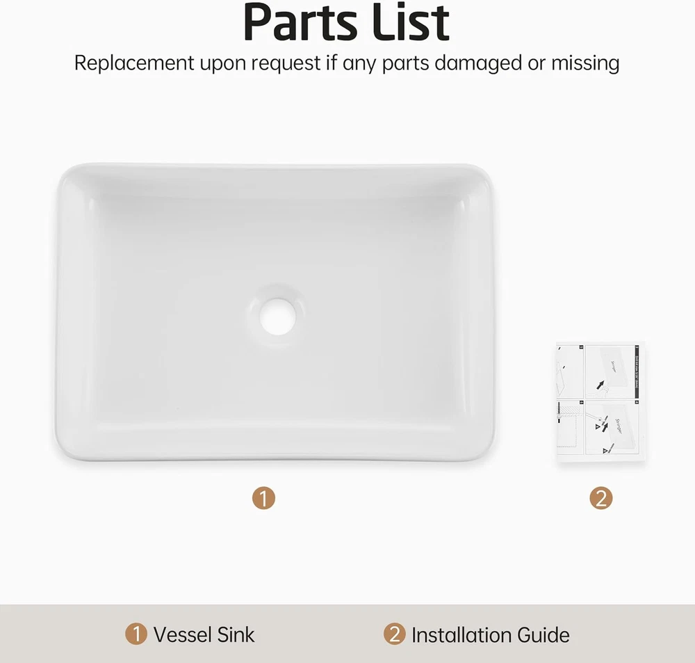 Store New Arrivals Add to Favorite View Feedback Contact Bathroom Vessel Sink 20 Inch above Counter Rectangular White Ceramic Countertop Sink for Cabinet Lavatory Vanity, BVS123S50 Description Base Width 13.4 Inches Style 19.9" X 13.4" Rectangle Color White Item Dimensions D x W x H 19.88"D x 13.4"W x 4.1"H Material Ceramic Material Type Ceramic Model Number BVS123S50-20190702 Item Weight 23.19 Pounds Drain Type Pop-Up Shape Rectangular Product Care Instructions Wipe with Damp Cloth Finish Types Painted Installation Method Countertop Product Dimensions 19.88"D x 13.4"W x 4.1"H Style Name 19.9" X 13.4" Rectangle Size 19.88"(L) X 13.4"(W) X 4.1"(H) Rectangular Vessel Sink: 19.88"(L) X 13.4"(W) X 4.1"(H). Standard 1.75" drain opening Superior Ceramic: The sink is made of premium quality ceramic, lasting beauty and exceptional durability Premium Glaze: This sleek vessel sink has a smooth, non-porous surface with a baked-on glaze for added durability and a high-gloss finish. Simply wipe the sink surface with a damp cloth to keep it looking beautiful with minimal maintenance Installation Requires: Top mount installation, no faucet hole, no overflow. Designed to work with wall-mount or counter-mount faucet Attention: Check the sink prior to installation to make sure it has not been cracked or chipped during shipping. Sink packed with extra-thick foam on all sides in the strong corrugated cardboard box to against shock and vibration Product Description The video showcases the product in use. The video guides you through product setup. The video compares multiple products. The video shows the product being unpacked. More Choices for You Add to Cart Add to Cart Add to Cart Add to Cart Customer Reviews 4.7 out of 5 stars 1,403 4.7 out of 5 stars 1,403 4.7 out of 5 stars 858 4.6 out of 5 stars 379 4.7 out of 5 stars 1,403 5.0 out of 5 stars 6 Price $95.00 $ 95 . 00 $68.00 $ 68 . 00 $69.90 $ 69 . 90 — $91.99 $ 91 . 99 — Shape Rectangle Rectangle Oval Round Rectangle Rectangle Color White White White White White White Material Ceramic Ceramic Ceramic Ceramic Ceramic Ceramic Installation Type Countertop Countertop Countertop Countertop Countertop Countertop Easy to Clean ✔ ✔ ✔ ✔ ✔ ✔ Hard-wearing Surface ✔ ✔ ✔ ✔ ✔ ✔ ABOUT US We offer the best prices around on high quality products. Our E-store includes media such as books, movies, music and games while offering electronics, toys, sporting apparel, clothing, tools, general home, garden items and more. SHIPPING We are always working hard to ensure your package arrives as soon as possible. Please understand that some factors like weather, high postal traffic, and the performance of shipping companies are outside of our control. We offer free shipping to the lower 48 states and ship within 2 business days of payment, usually sooner. We do not accept P.O. Boxes. Please provide a physical address. For shipping outside of the continental USA, we only use eBay's Global Shipping Program.The item is shipped to KY and then sent to the rest of the world. International customers are responsible for all duties and taxes. Continue to check out in order to calculate costs for shipping the item to your country. Messages regarding eBay's Global Shipping Program MUST be directed at eBay EXCLUSIVELY. RETURNS We offer a 30-Day Return Policy on items which you are not completely satisfied with. You have the option for a full-refund or an exchange of the item. No returns are available on items shipped outside of the USA. PAYMENT We accept PayPal. CONTACT US This page content is yet to come Please ad us to your favorite seller and visit again later Thank You CUSTOMER SATISFACTION We try our very best to make sure every customer is completely satisfied. If there's a problem, message us! We're happy to help. WE ACCEPT Copyright © 2021 AutoDS. | All Rights Reserved