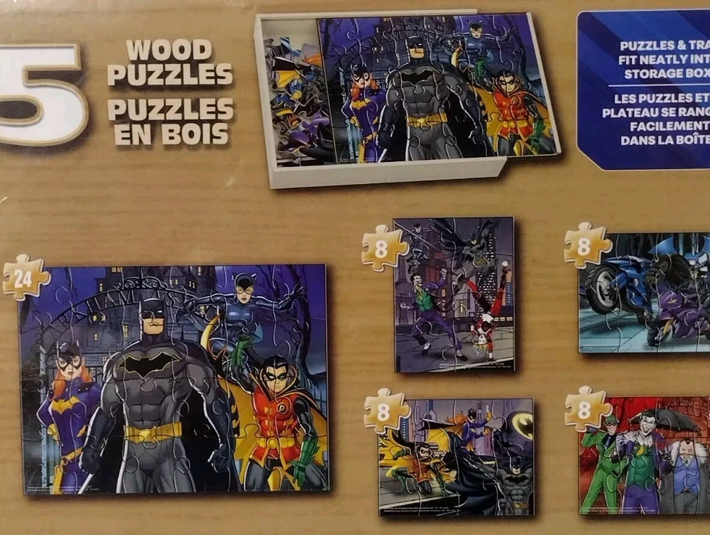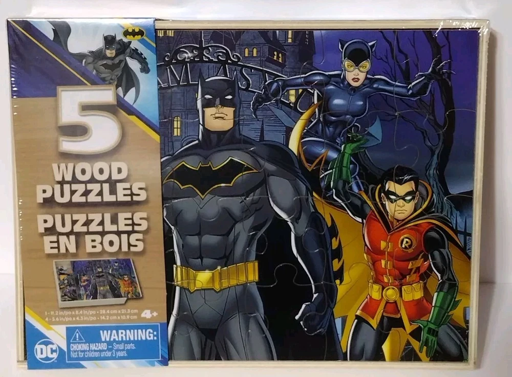 Get ready to assemble your favorite superhero characters with this limited edition Batman & Robin 5 puzzle set. Made from high-quality wood, this puzzle set is perfect for fans of all ages. With a recommended age range of 4+, this puzzle set is suitable for both kids and adults. The puzzle set features complete jigsaw puzzles with a multi-color design, showcasing the iconic characters from the DC Universe. The puzzles are manufactured in China and are part of the contemporary puzzle category. This rare and collectible item is perfect for any fan of Batman and Robin. Order now and add this amazing puzzle set to your collection!