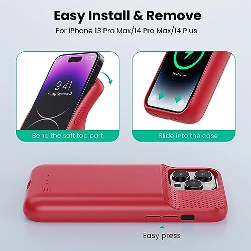 Return Policy Fast Delivery Trusted seller Battery Case for iPhone 14Plus/14Pro Max/13Pro Max, Powerful 8600mAh Portable Protective Charging Case,Rechargeable Extended Battery Charger Case for iPhone 13Pro Max/14Plus/14Pro Max(6.7 Inch),Red Product Description 【Important Note】ONLY compatible with iPhone 14Plus, iPhone 14 Pro Max and iPhone 13 Pro Max (6.7inch). NOT compatible with iPhone 13/14 mini (5.4inch),13/14/14 Pro (6.1inch). NOT support wireless charging. ONLY compatible with wireless Bluetooth headphones. 【8600mAh High Capacity & Ultra Slim Charging Case】High capacity battery charger case compatible with iPhone 14 Plus/14Pro Max/13Pro Max to extend your Phone 200% service charging life. Enjoy more talk, music, movies, and internet surfing time.Portable and slim design, perfect for travel and work. 【Charging Safety and Protection 2 in 1】Certificated UL,CE,FCC,Rohs and Internal upgrade chips protect your Cell Phone 14/13Pro Max and Cell Phone 14 Plus from over-heating, short-circuiting and over-charging. 360°full bumper design and hard shell back to protects your Phone from everyday damage:①Raised bezels offer front and surface protection.②Tempered Glass screen protector included for full frontal protection. 【Advanced Sync Tech & Easy Installation & LED Indicator】The cell phone 13Promax, 14 pro max and 14 Plus portable battery case support the data-sync function. Make your life more convenience. Bend the extended battery's top soft rubber, then push the phone into the bottom of the charger case. Press Phone charging case's power button 3s after installation to turn on/off the battery case.4 LED power level indicators display battery level (25%-50%-75%-100%). 【Worry Free Purchase】You will get rechargeable battery case compatible with iPhone 14Plus/14Pro Max/13Pro Max x 1, Tempered-Glass Screen Protector x 1, User Manual x 1, and 24 Months after-Sale Technical Support, 30days no-hassle return or refund and 24H customer service. Shipping Returns Payment Shipping Shipping is FREE to all addresses other than APO/PO boxes in the lower 48 states. All our stock ships from US-based warehouses. Shipped via USPS or UPS (depending on location and package weight) Unless stated otherwise, all orders will ship within 24-72 hours of your payment being processed. Check our feedback to see the great reviews of FAST shipping we offer. Returns Seller does not accept returns Payment We currently accept payment via eBay managed payments only. Once payment is cleared, we will dispatch your shipment within 1-3 business days. Please refer to the "Shipping" tab for more information regarding shipping speed to your destination.