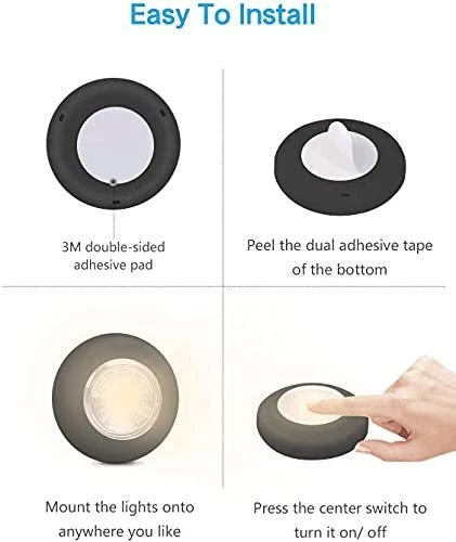Return Policy Fast Delivery Trusted seller Battery Operated Lights Tap Lights LED Push Lights Stick on Lights Portable Under Cabinet Lighting Wireless Kitchen Closet Counter Night Lights 5 Pack, Black Product Description BATTERY POWERED: Powered by 3 PCS AAA batteries (not included), no wires required. Energy saving and environmental protection SUPER BRIGHT: Use new LED light technology, unparalleled brightness, can output 50 lm glare. Provides reliable and adequate light protection at night or in dark places SIMPLE TO INSTALL, NO HARD-WIRING: With double-sided adhesive pads, you can stick on anyw you like, press the center switch to turn it on/ off PORTABLE SIZE FOR ANYWHERE: Bring you brightness in dark night or in camper. Small size about 3 inch wide and ultra thin 0. 9 inch perfect for closet, under cabinet, hallway, stairs, car, sheds and storage room 12 MONTHS PROMISE: Backed by the customer satisfaction . We will always replace a faulty product or refund your purchase. Just contact us if you have any problems Shipping Returns Payment Shipping Shipping is FREE to all addresses other than APO/PO boxes in the lower 48 states. All our stock ships from US-based warehouses. Shipped via USPS or UPS (depending on location and package weight) Unless stated otherwise, all orders will ship within 24-72 hours of your payment being processed. Check our feedback to see the great reviews of FAST shipping we offer. Returns Seller does not accept returns Payment We currently accept payment via eBay managed payments only. Once payment is cleared, we will dispatch your shipment within 1-3 business days. Please refer to the "Shipping" tab for more information regarding shipping speed to your destination.
