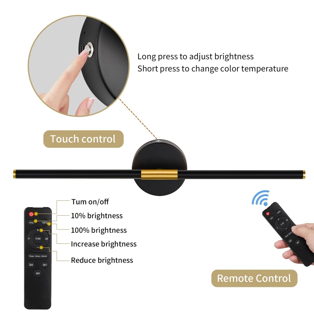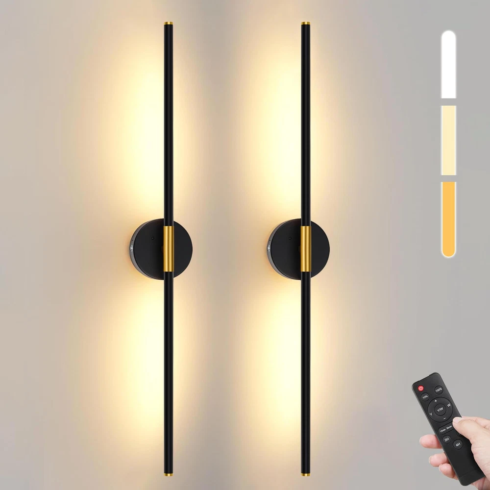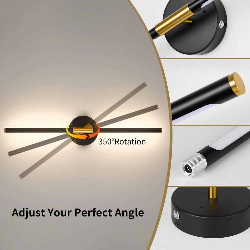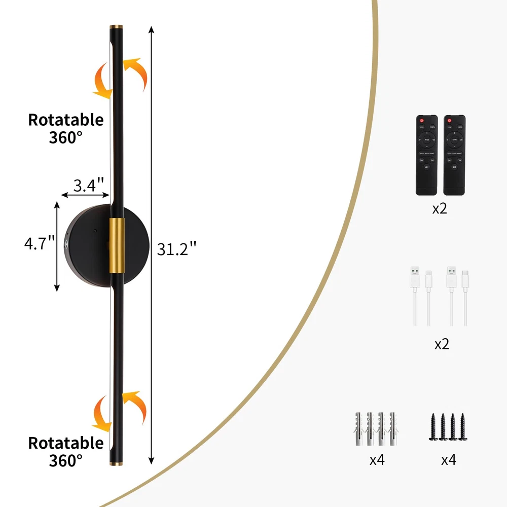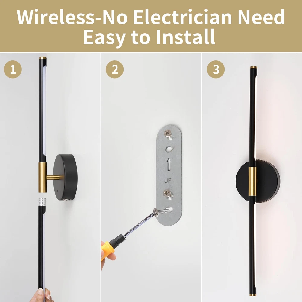 【Wireless Battery Operated】This rechargeable wall sconces uses a rechargeable battery and can be charged with a Type-C data cable (included), you can use it to charge the battery wall sconces 【3 Color Temperature】The 3CCT wall sconces battery operated has three color temperatures: 3000K warm light, 4500K neutral light, and 6000K cool light. You can choose any of them you like 【Easy to Install】You don't need to hire an electrician, as this battery powered wall sconce is very easy to install and doesn't require any wiring. You just need to install the mounting plate and then hang the sconces 【Remote and Touch Control】This wireless wall light has two control methods: one is a remote control, and the other is touch control. You can adjust its brightness between 10% and 100% 【Modern Design】This sand nickel battery wall sconce is very modern and versatile, with the entire lamp tube able to rotate 350°, allowing you to choose the direction of the light freely