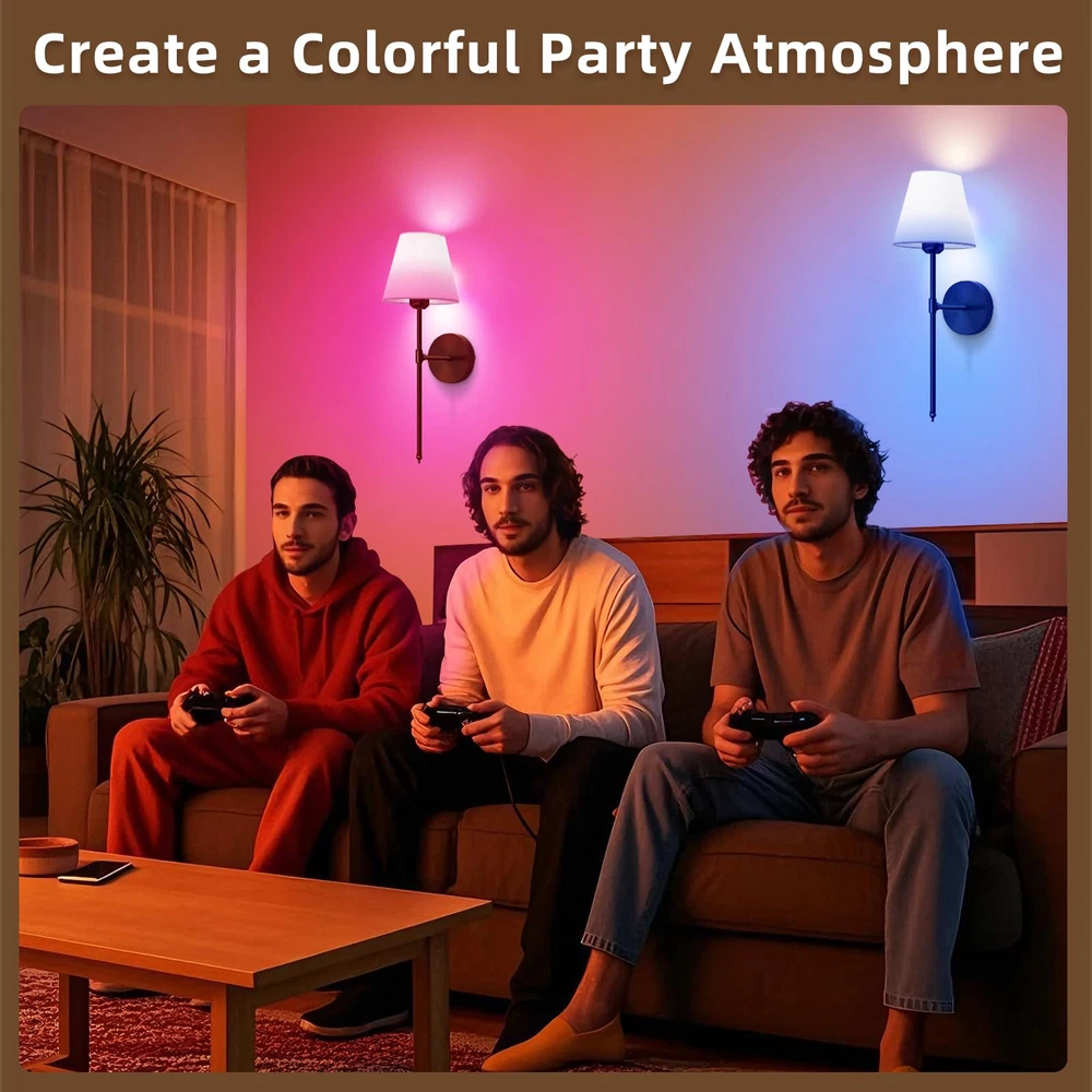 【Battery Operated Wall Sconce Set of 2】Unlike other wireless wall sconces with short battery life that often fail to work properly, ours have long battery life detachable bulb, which can be fully charged within 3 hours with our own Type-C charging cable.They can work continuously for more than 18 hours at medium brightness. Note: Do not use a fast charger over 5V to charge the bulb.What's more, these bulbs are soft, no dazzle, non-flickering, eye caring and longer lifespan.Ideal for creating a romantic ambiance on Valentine's Day and Christmas. 【Wireless Remote Customization: All Colors & Brightness】Choose 3 color temperature modes (3000K-4500K-6000K), 12 RGB colors, 5 brightness levels, 3 timing settings and night light mode through the remote control ensures you have the perfect light setting for any occasion, making it more energy-efficient. 【Easy to Install】 upgraded wall sconces features wireless design allows you safely install it anywhere without worrying about whether there is a socket or connection port. It minimizes damage to the wall and you can also replace it at any time. 【E26 Replaceable 15-Color RGB Bulbs Included】The wall lights come with 15-color RGB bulbs, allowing you to change the color to suit your mood or occasion. These bulbs have a lifespan of up to 40,000 hours, ensuring long-lasting and versatile lighting options. 【Perfect for Any Home Decor】These wall lamps are perfect for your living room, office, vanity, or even dark areas like hallways, closets, and corridors. We prioritize customer needs, providing high-quality products and excellent customer service. If you encounter any quality issues within 24 months, please contact us.