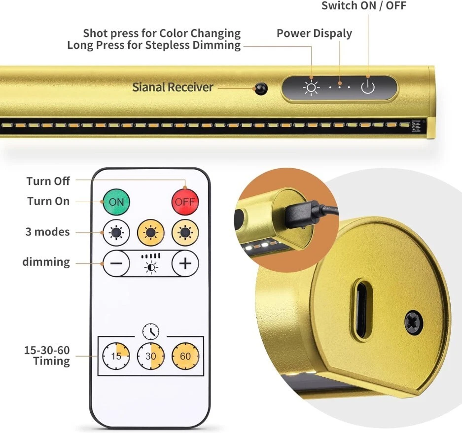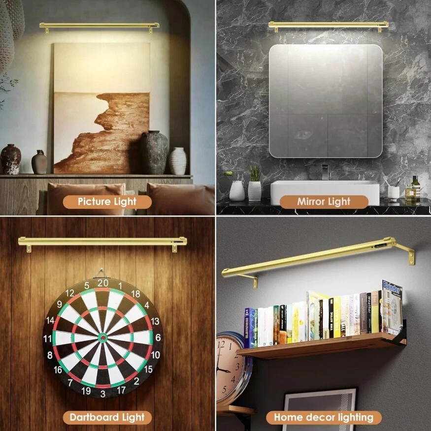 Free eBay listing template designed by dewiso.com Welcome to My Stores, Happy Shopping! ------------------ Battery Operated Wireless Picture Light,Rechargeable/Plugged in 31.5Inch Paintin About this item 【Modern Led Display Picture Lights】The wireless picture light come with (3000k warm light/4000k warm white light/6500k cool white light),enough for the brightness needed. Also the diamond art pictures light no need battery replacements, No wires. time switch. The integrated design makes it look more cool. 【Large Battery Operated Gallery Lights】Built-in 8000mAh rechargeable lithium battery, charging 5-6 hours and normal brightness can last for 16 hours. Magneted attached make easy to charging. wireless remote control, portable lighting your art. 【Easy Install&Easy Control Wall Picture Light】The picture light come with magnetic attach function, easy remove anytime. screwed in to make more secure, also it come with two simple control remote. 【Multifunctional Wall Light】We provide a 2.5 meter long charging cable that can be used as a plug-in light when powered on with a 5v2a adapter. Please note that we do not provide an adapter. Not just a picture light on wall but also can be mirror headlight、painting light、art light、dartboard light、portrait light etc. 【The Wall Sconce Included】1*picture light with 2pcs holder、2*control remote、1*TYPE-C charging cable (one meter)、1*TYPE-C charging cable(2.5 meter)、1*Manual、9pcs screws Product Description Finish Type ‎Painted Bulb Base ‎Wedge Product Dimensions ‎1.18"D x 31.5"W x 1.18"H Item Weight ‎15.52 ounces Shade Color ‎White Switch Type ‎Touch Style ‎Modern Color ‎Gold Special Feature ‎Adjustable Color Temperature Light Source Type ‎LED Material ‎Aluminum Room Type ‎Bedroom Power Source ‎Battery Powered Shape ‎Round Controller Type ‎ Remote Control Number of Light Sources ‎140 Connectivity Technology ‎Bluetooth Included Components ‎Remote Control Mounting Type ‎Wall Mount Wattage ‎5 watts Number of Items ‎1 Lighting Method ‎Adjustable Control Method ‎Remote Indoor/Outdoor Usage ‎Indoor Specific Uses For Product ‎Home Water Resistance Level ‎Not Water Resistant Installation Type ‎Flush Mount Voltage ‎5 Volts (DC) Brightness ‎280 Lumen Part Number ‎PC-80c Item Weight ‎15.5 ounces Batteries ‎1 Lithium Ion batteries required. (included) Finish types ‎Painted Special Features ‎Adjustable Color Temperature Shipping Tracking number: Available We use a selection of shipping services such as UPS, FedEx, USPS etc. We only ship to the lower 48 states, no APO/FPO addresses or PO Boxes allowed. Local pickups and combined shipping options are not provided at this time. Contact us We can be contacted at any time through eBay messages if you have any questions, comments or product requests. We will respond to you within 24 hours and do our best to help you out! We encourage our customers to contact us with any questions or concerns! We'd like to be sure you are completely satisfied with your purchase