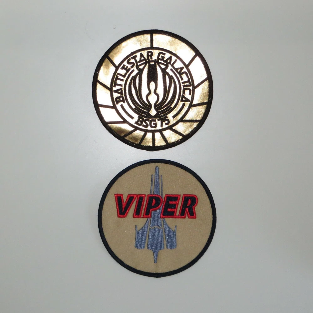 Battlestar Galactica Uniform Costume Patch Set 3.5" (VIPER AND BSG75 GOLD) EACH PACKAGE CONTAINS TWO PATCHES SIZE: 3.5"- 4" WE STRIVE FOR 5 STAR FEEDBACK SO IF YOU ENCOUNTER A PROBLEM, PLEASE LET US KNOW. WE WILL MAKE IT RIGHT! SHIPPED WITHIN 24 HOURS OF PAYMENT. CHECK OUT THE OTHER COOL NOVELTY ITEMS IN OUR STORE! THANKS FOR LOOKING!