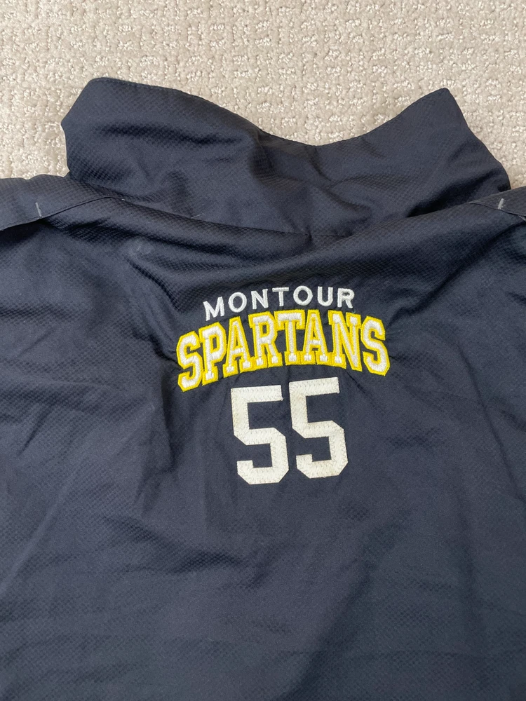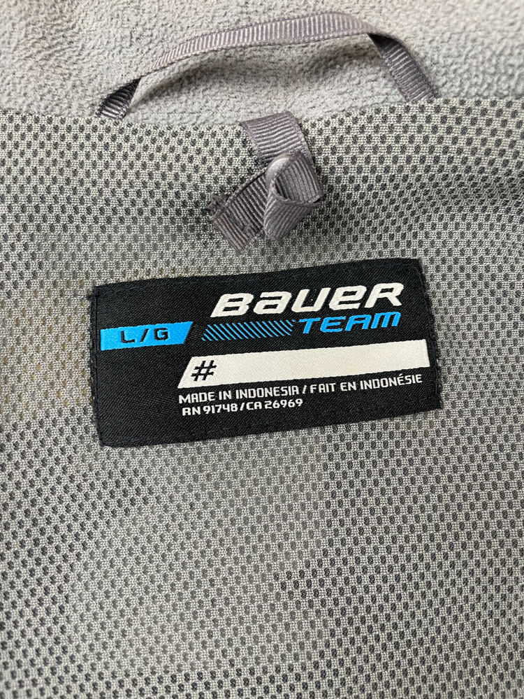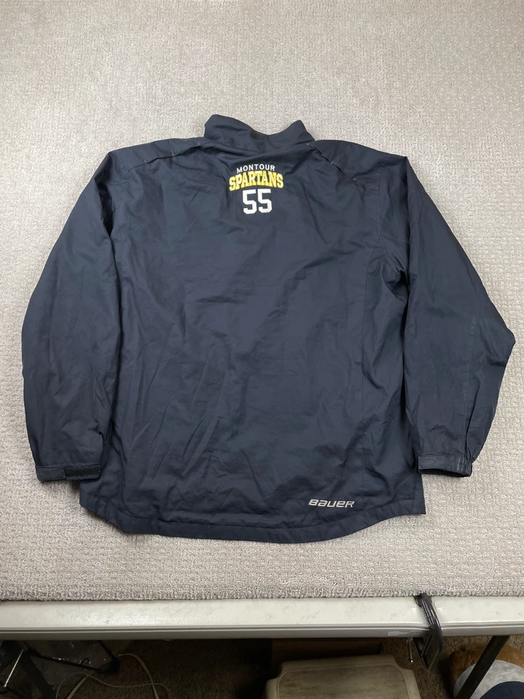 The Bauer Team Jacket is a warm and stylish men's hockey full zip windbreaker in black. Made of durable polyester, it features a full zip closure, making it easy to put on and take off. The jacket is machine washable and designed for winter, fall, and spring seasons. With a regular fit and logo accents, this windbreaker is perfect for casual wear and hockey activities, providing both comfort and style for everyday wear.