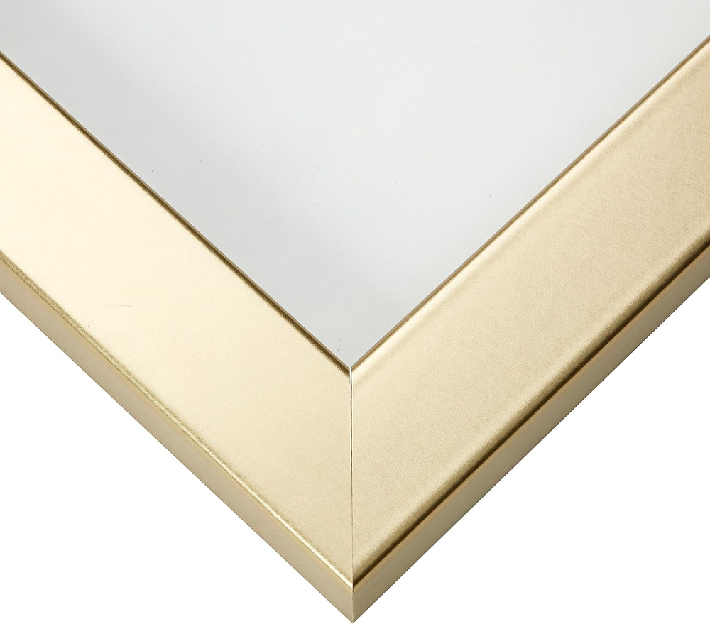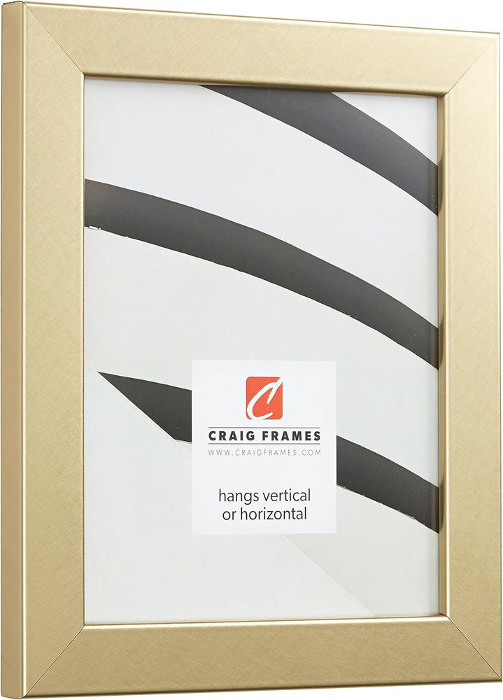 Modern style; brushed gold appearance; smooth laminate wrap finish (NOT ACTUAL METAL) Frame includes: clear acrylic facing, rigid cardboard backing and wire hanging hardware kit (some assembly required) Frame holds a 24 by 36-Inch photo/print/poster (viewable area reduced by .25 inches on each side due to frame lip) Frame moulding is 1.25 inches wide; solid MDF construction Frame is designed for WALL HANGING only (hanging hardware allows for portrait or landscape orientation) Product Description Craig Frames American-made & Trusted for Over 30 years Craig Frames offers hundreds of styles and sizes. Our products include picture frames, poster frames, photo frames, collage frames, document frames, framed maps, matting, bulletin boards, & more. A Trusted Brand & US Manufacturer Offering a Vast Selection of High Quality Home Décor Products Enjoy a vast selection of highly rated, affordable, professional quality picture frames and poster frames for wall hanging or table top use. Craig Frames also offers 2-Packs & 4-Packs for gallery wall sets, large art projects, or wholesale purchases. Styles include Modern, Rustic, Farmhouse, Boho (Bohemian), Ornate, Metallic, Weathered & Distressed, and more. Most frames are available in 30+ popular sizes, and many are available in 500+ custom frame sizes. With more than 45,000 Seller Ratings, thousands of customers continue to enjoy our American-made picture frames for their home décor projects. Living room, bathroom, kitchen, bedroom, nursery, or office; we're confident you'll find the perfect style and size for your decorative project or business needs. Visiting our Brand Store provides a simple, well organized, way to discover framing solutions for every project or occasion. (Click 'Visit the Craig Frames Store' above) Exceptional Value, Selection, Quality, and Service Styles Available Modern, Farmhouse, Contemporary, Rustic, Boho, Antique, Ornate, Weathered, Distressed, Metallic, Natural, & More Sizes Available Most frames are available in 30 or more popular picture frame sizes. 500+ custom frame sizes available in some styles.. Occasions Birthday, Mother's Day, Father's Day, Christmas, Graduation, Baby Shower, Home Renovation, Off to School, & More. Quality American-made in Michigan by professional framers with materials sourced primarily in the USA. Reputation More than 45,000 seller reviews supporting our quality craftmanship and service. Service US based support team providing real-time service & solutions What Customers are Saying "Excellent service, safe packaging." "Actually arrived ahead of estimated delivery date" "Perfect frames for my antique posters! Very nice." "Amazing, better than I had envisioned." "Well packaged and arrived on time in perfect condition" "Sturdy, very well made frames." "Thank you for sending this so fast! It is just what I wanted."
