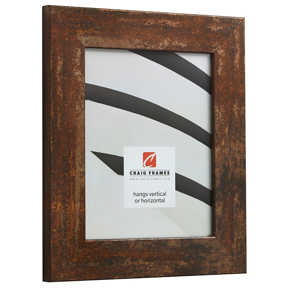 Shabby chic style; rusty iron coloration with chopper and brown hues; distressed appearance; smooth laminate wrap finish Frame includes: clear acrylic facing, rigid cardboard backing and wire hanging hardware kit (some assembly required) Frame holds a 20 by 30-inch photo/print/poster (viewable area reduced by .25 inch Frame molding is 2 inches wider; solid mdf construction Frame is designed for wall hanging only (hanging hardware allows for portrait or landscape orientation)