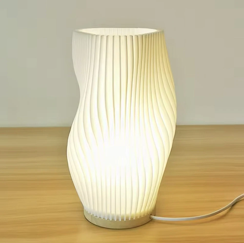 Introducing a stylish and functional bedside table lamp that will add a touch of Mid-Century Modern charm to your bedroom. This lamp features a unique spiral design and is made of high-quality materials such as wood, stainless steel, and glass. It comes with a USB power source and can be controlled with a knob control. With a semi-matte finish this lantern is perfect for both unisex baby and toddler, and unisex adult use. It has a light sensor type and emits a white, clear light color, making it a great addition to any bedroom decor. This original, designer piece is perfect for those who appreciate art, advertising, and romantic themes.
